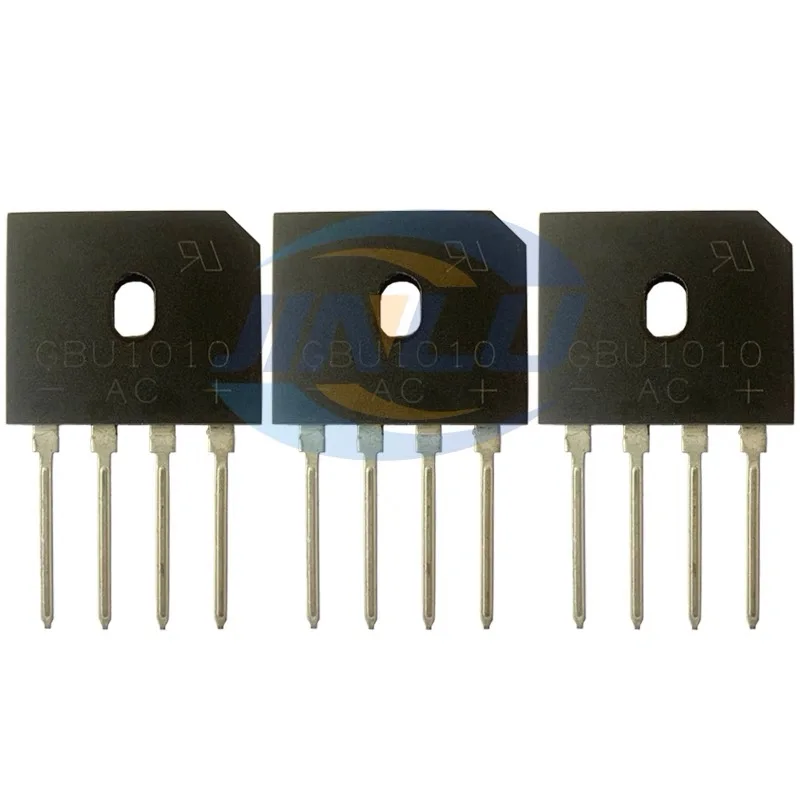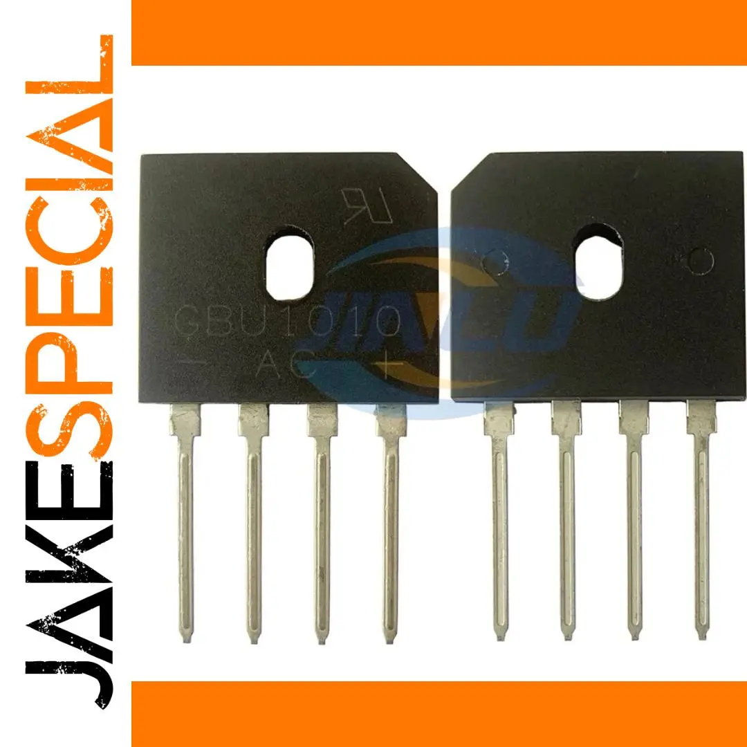This set of five high-performance bridge rectifiers includes models GBU406, GBU408, GBU410, GBU606, GBU608, GBU610, GBU806, GBU808, GBU810, GBU1010, GBU1510, GBU2510, and GBU3510, ideal for inverter and converter applications. Featuring through-hole design, these robust components are suited for high-current, high-voltage environments with ratings from 6A (GBU606, GBU608) up to 25A (GBU2510) and voltage ratings from 400V to 1000V. Their sleek, black matte finish and precisely spaced metal leads ensure reliable circuit connections and durable performance, making them a trusted choice for demanding electronic projects.