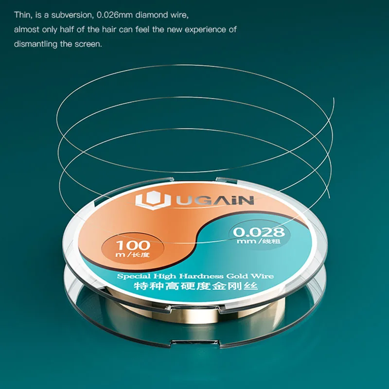 - High-hardness gold-colored wires available in four sizes—0.028mm, 0.03mm, 0.035mm, 0.04mm—designed for precise LCD screen separation. Suitable for intricate repair work in electronics.