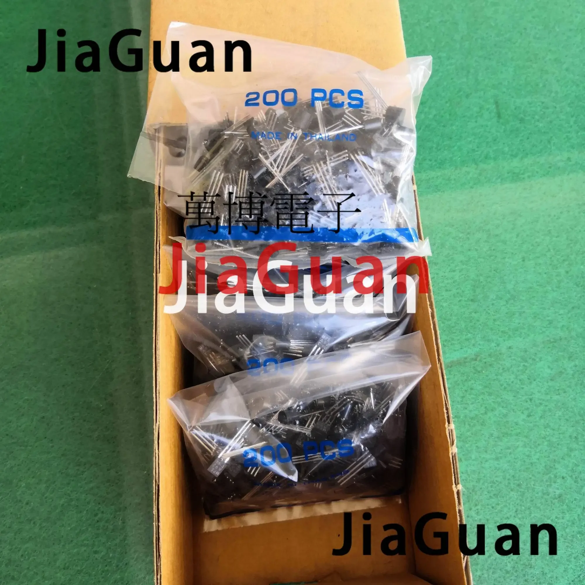 - Each transistor features a TO-92 plastic package with three metal leads, spaced evenly, and designed for easy mounting onto circuit boards in audio/video equipment.