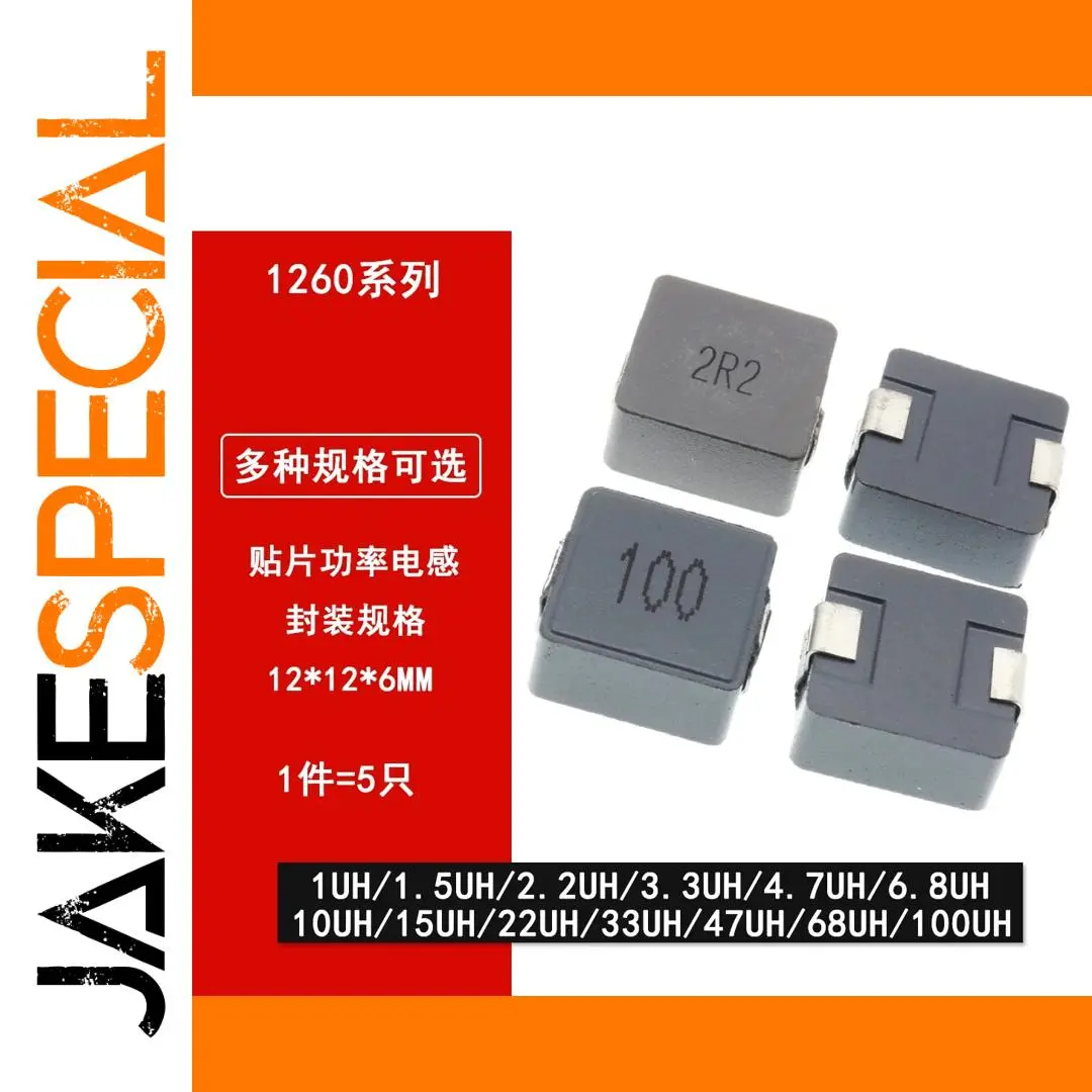 This set of five power inductors features a compact 12x12x6 mm size and offers a range of inductance values including 1 μH (1R0), 1.5 μH (1R5), 2.2 μH (2R2), 3.3 μH (3R3), 4.7 μH (4R7), 10 μH (10), 22 μH (220), 33 μH (330), 47 μH (470), 68 μH (680), and 100 μH (101). Designed for high-performance electronic applications, these inductors are packaged in electrostatic bags and cartons and undergo rigorous testing to ensure quality and reliability. Their sleek, insulated design and versatile inductance options make them an ideal choice for power management circuits, filtering, and energy storage in various professional electronic projects.
