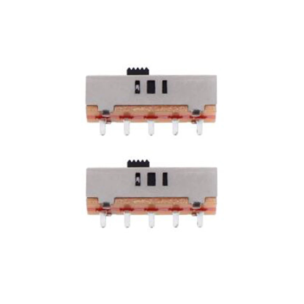 Imagine upgrading your electronic project effortlessly with these durable, professional-grade toggle switches. Crafted with a sleek, modern design, each switch features a compact rectangular shape with a polished silver metallic finish that enhances any control panel’s aesthetic. The black plastic toggle lever, textured with ridges, provides a secure grip to confidently switch between three different positions. Internally, these switches reveal carefully engineered components—brownish-orange insulation and metallic contacts—highlighting their precision and quality. Perfectly suited for DIY electronics, industrial automation, or custom circuits, these switches combine functionality with a clean industrial look. With their robust construction and straightforward design, you'll feel assured they can handle your technical needs smoothly and reliably.