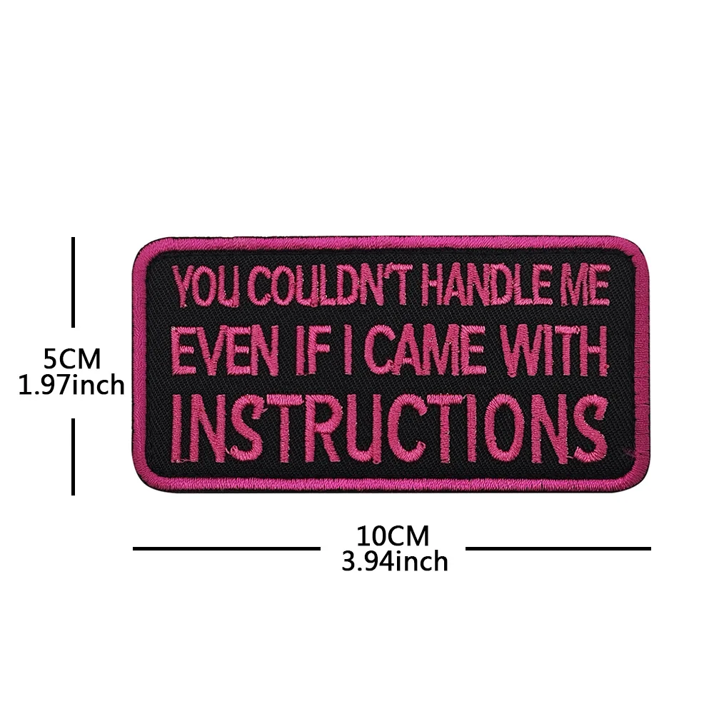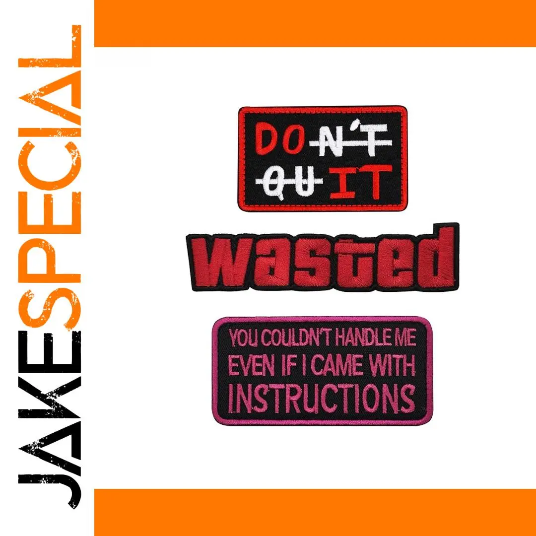 Transform your clothing and accessories with this personalized embroidery patch, designed to inspire and amuse. Featuring vibrant colors and motivational phrases, this unique patch showcases quality craftsmanship with a textured embroidery style. The primary patches—which read “DON'T QUIT,” “WASTED,” and “YOU COULDN'T HANDLE ME EVEN IF I CAME WITH INSTRUCTIONS”—impart bold personality to jackets, backpacks, and hats. Ideal for unisex wear, they're perfect for expressing individuality through fashion. Plus, with a hook and loop backing, application is effortless, allowing you to create unique combinations tailored to your style.