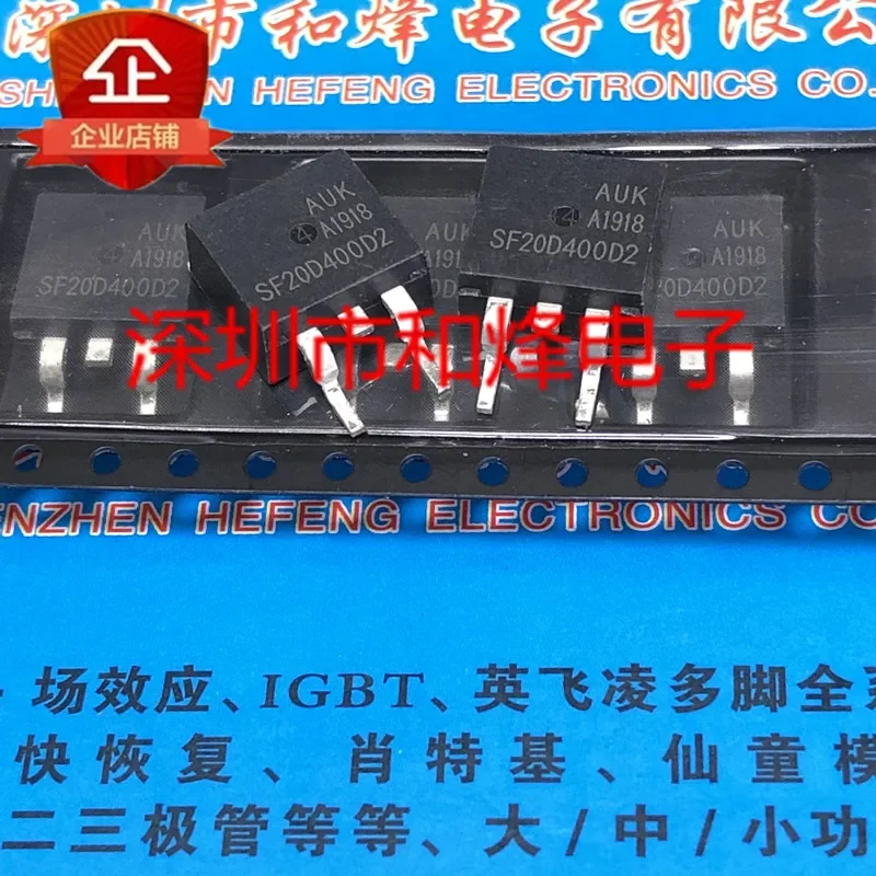 Experience reliable power regulation with this set of 10 high-quality SF20D400D2 surface-mount rectifiers, featuring a TO-263 package design. These imported components are rated for 400V and 20A, making them ideal for demanding electronic applications. Each unit undergoes 100% testing to ensure optimal performance and durability. Packaged in static-shielded bags or cartons, depending on quantity, they offer a secure, easy-to-handle solution for your circuit designs. With a sleek black surface finish and white printed markings indicating model numbers, these components combine functional precision with a modern, industrial aesthetic, perfect for professional electronics projects requiring robust power management.