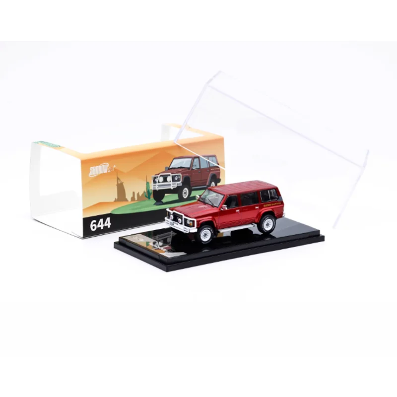 This Shadow Pro 1:64 scale model of a classic SUV features a durable alloy and plastic construction, measuring approximately 1/64 in scale. Showcasing a striking wine red color with black trim accents, it offers intricate detailing including a rectangular grille, square headlights, chrome bumper, transparent windows, and a mounted spare tire with a vivid decal. The model’s static design makes it an ideal collectible or gift for adult enthusiasts, with dimensions precisely measured but subject to slight variations. Crafted solely for display, this diecast ornament contains no electronic parts or batteries, perfect for adding a touch of nostalgic sophistication to any collection.