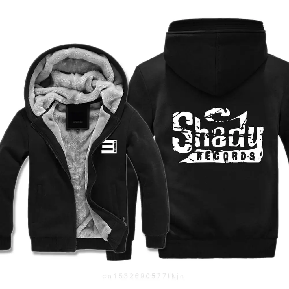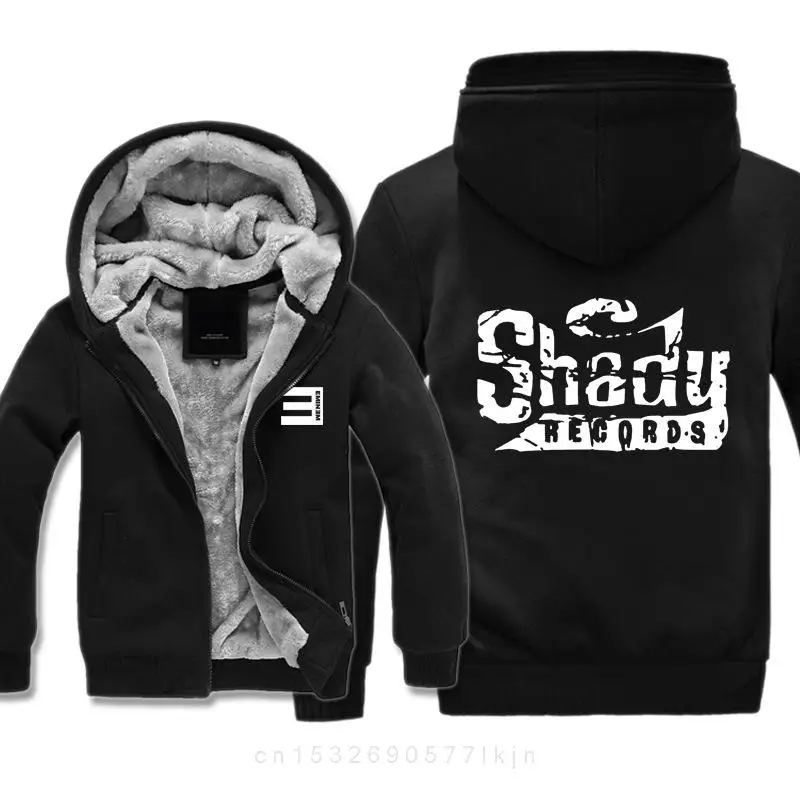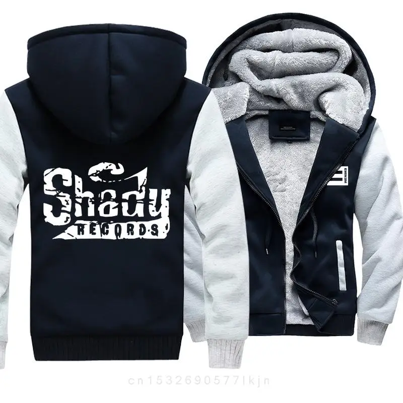 The Shady Records Warm Coat Hoodie is designed for men, featuring a stylish black body with contrasting gray sleeves for a modern look. The bold white “Shady RECORDS” graphic gives it a vintage flair. It has a full zipper closure for easy wear, a cozy hood, and a soft fleece-like lining for exceptional comfort, comparable to wool. The hoodie is made from a durable blend of cotton and polyester, perfect for autumn and winter daily wear. Available in multiple colors and sizes ranging from S to 5XL, it effortlessly combines casual style with practicality.
