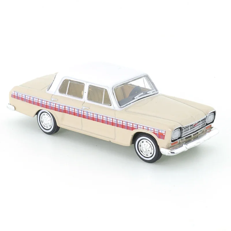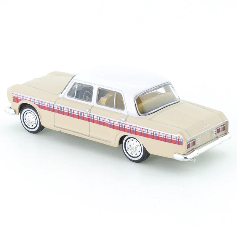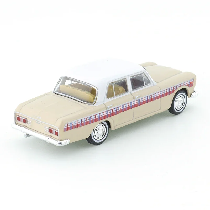 Experience the craftsmanship of this 1:64 scale diecast model car designed as a detailed replica of a vintage sedan in a charming Shanghai SH760A Milk Tea color. Crafted from durable metal, the model features a sleek, elongated body with a white roof, rectangular headlights, a metallic grille, and a polished chrome bumper. A distinctive red and white plaid stripe runs along the side, adding a stylish touch. With intricate hubcap wheels and textured black tires, this alloy toy captures nostalgic elegance. Suitable for collectors aged 14 and above, it offers optional semi-automatic features and options for battery inclusion, making it a perfect addition to any enthusiast’s collection.