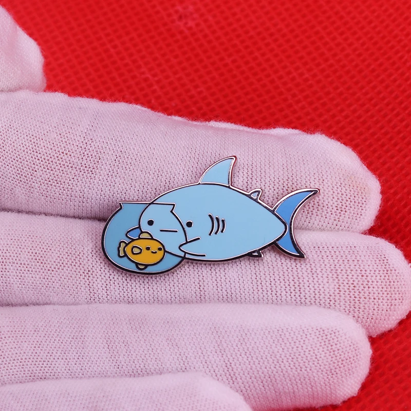 This cute Shark friends! enamel pin combines playful design with quality craftsmanship, making it a charming and versatile piece for any accessories collection. Its colorful, whimsical look will brighten your style and bring fun to any occasion, perfect for expressing your personality with a touch of playful charm.
