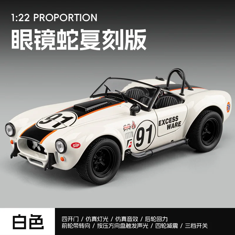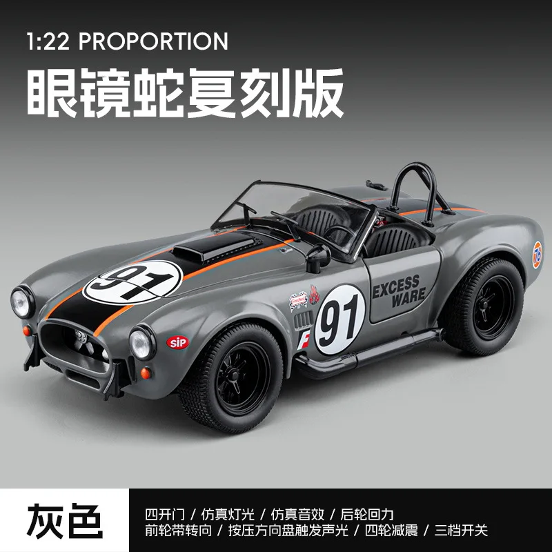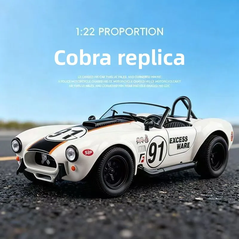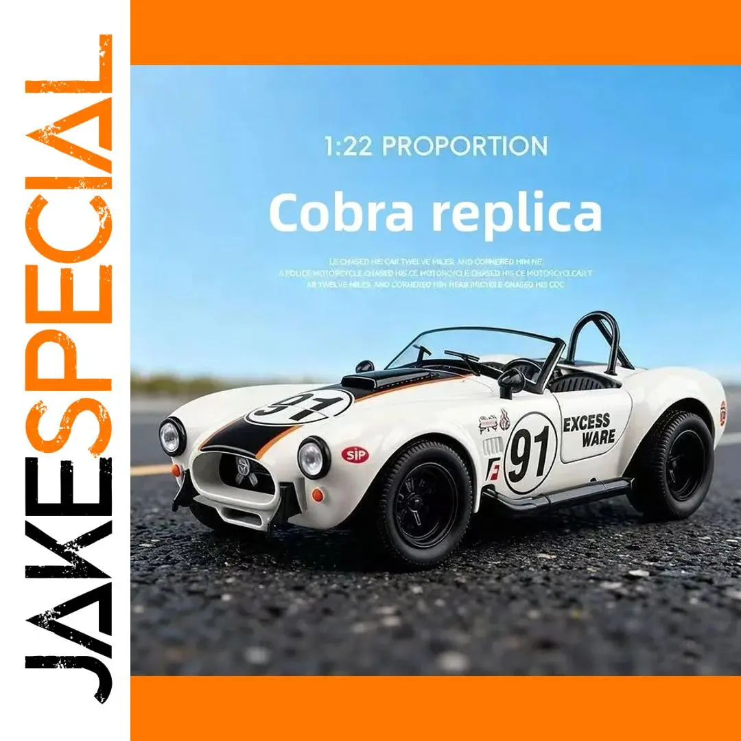 - This 1:22 scale Shelby Cobra model is made of alloy metal, offering a realistic and durable collectible with precise detailing and a shiny metallic finish for an authentic vintage aesthetic.