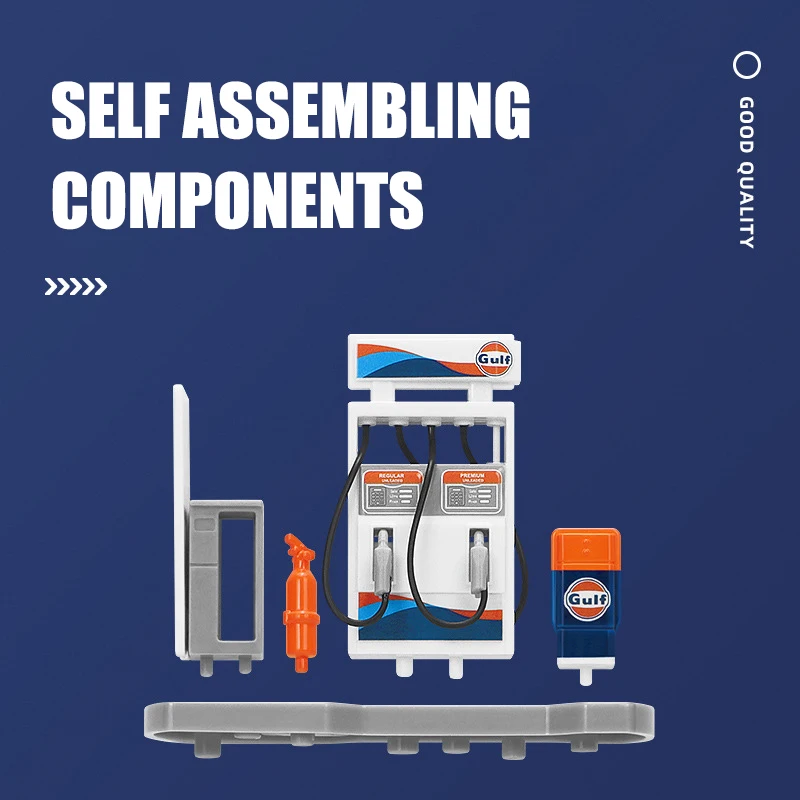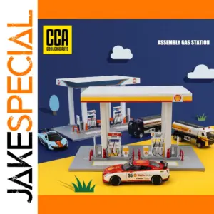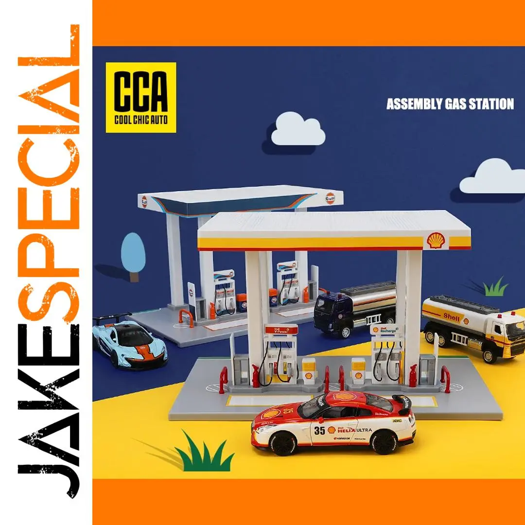 Imagine owning a beautifully crafted miniature of a modern gas station scene that instantly adds charm to your collection or decor. Made from high-quality metal, this 1:64 scale die-cast model captures the vibrant charm of a Shell gas station with its white canopy accented by bold yellow and red stripes. Surrounding the station are detailed miniature vehicles including a sleek black, white, and orange sports car, Gray and black tanker trucks, and a blue aerodynamic car, all designed with precise, vivid colors to evoke a lively urban vibe. Perfect for collectors and hobbyists, this model offers a realistic, visually engaging display that brings a bustling gas station environment to life in your space.