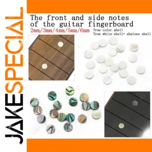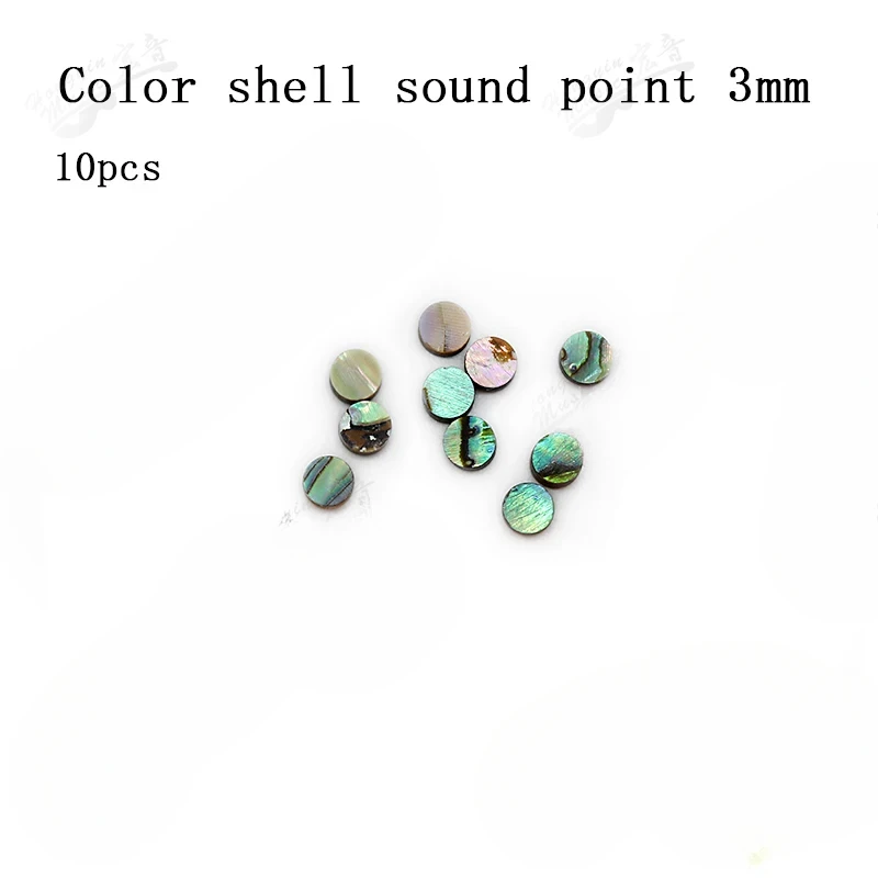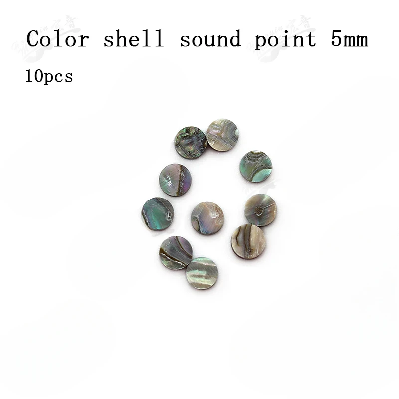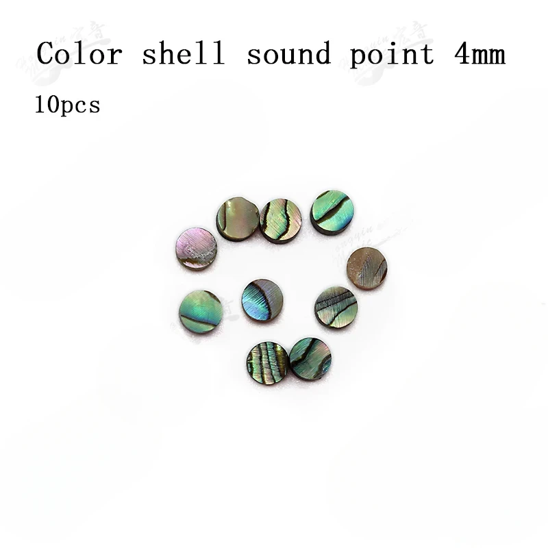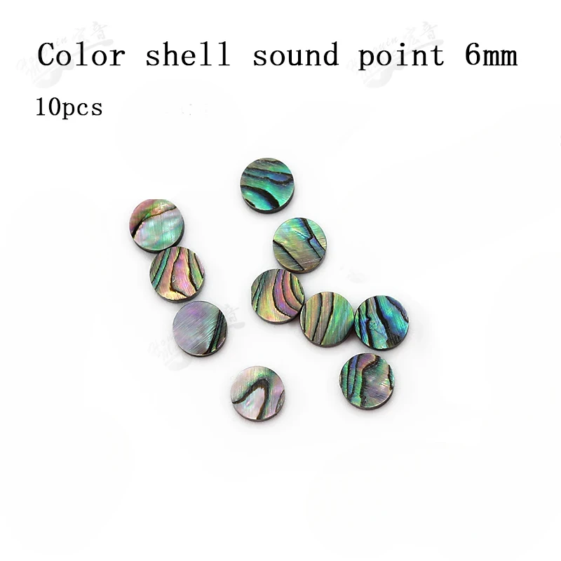 Enhance your guitar customization with this set of 10 premium tone points crafted from stunning true color shell, white shell, and vibrant abalone shell. Available in diameters of 2mm, 3mm, 4mm, 5mm, and 6mm, each with a 2mm thickness, these round, flat metal-backed sound points feature a glossy, nacreous finish and iridescent shimmer that highlights natural organic beauty. Ideal for DIY guitar projects, they measure approximately 16mm x 14mm x 3mm and weigh just 30 grams per set. These shell tone points seamlessly blend luminous color and natural elegance, providing an exquisite aesthetic touch to your instrument.