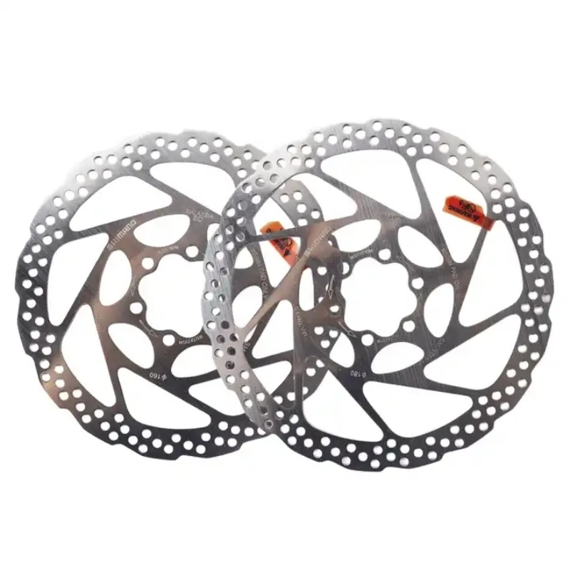 Experience unmatched braking performance with this Shimano Deore SM-RT56 brake rotor set, designed for mountain biking enthusiasts. This set includes one 180mm rotor and one 160mm rotor, both engineered from durable steel with a polished finish for added resilience. The unique cut-out patterns around the rotors enhance heat dissipation and reduce overall weight, promoting optimal performance in all riding conditions. The reliable hydraulic disc brake system ensures consistent stopping power, allowing you to ride with confidence on any terrain. Accompanied by six black bolts, installation is straightforward and secure, making your biking experience even more enjoyable.