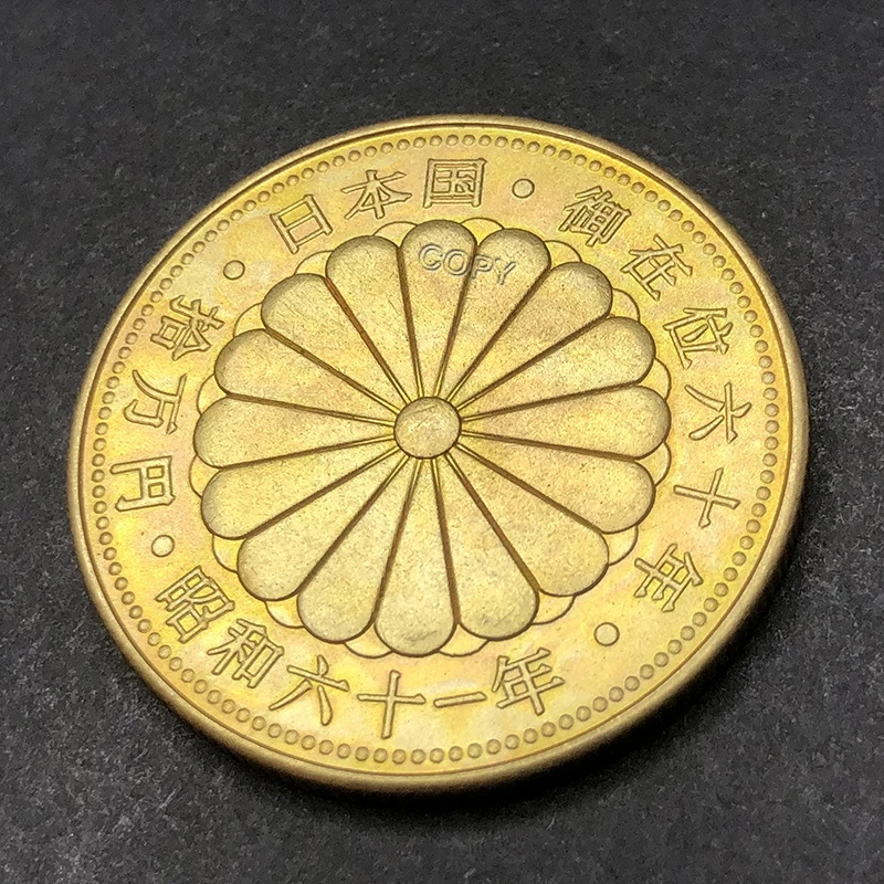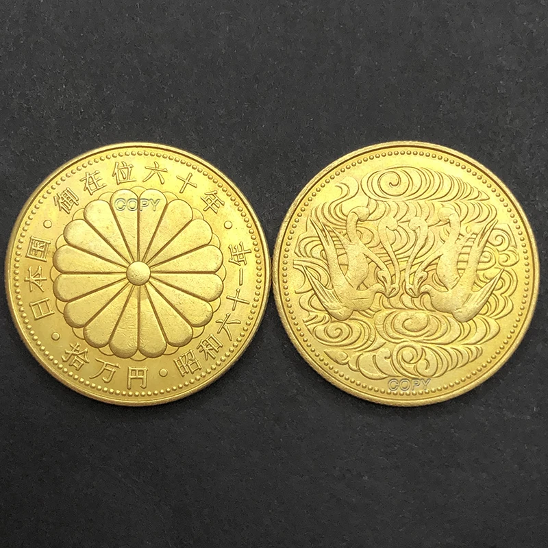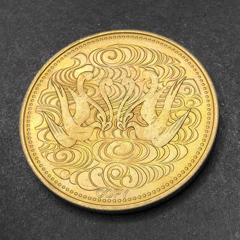Discover the timeless beauty of this Japanese Showa Era Copper Replica, crafted with meticulous detail to evoke the richness of traditional Japanese artistry. Measuring 30mm in diameter, this high-quality copper piece symbolizes heritage and craftsmanship. Available in two stunning finishes—vibrant gold that exudes luxury and sleek silver that offers modern elegance—this collectible is perfect for display or gifting. The front side showcases a magnificent chrysanthemum with radiating petals, encircled by elegant Kanji characters that represent nobility and longevity. The reverse depicts stylized phoenixes rising among swirling clouds, engraved with fine lines that suggest movement and grace. Every aspect, from the dotted borders to the intricate line work, enhances its vintage aesthetic and handcrafted appeal.