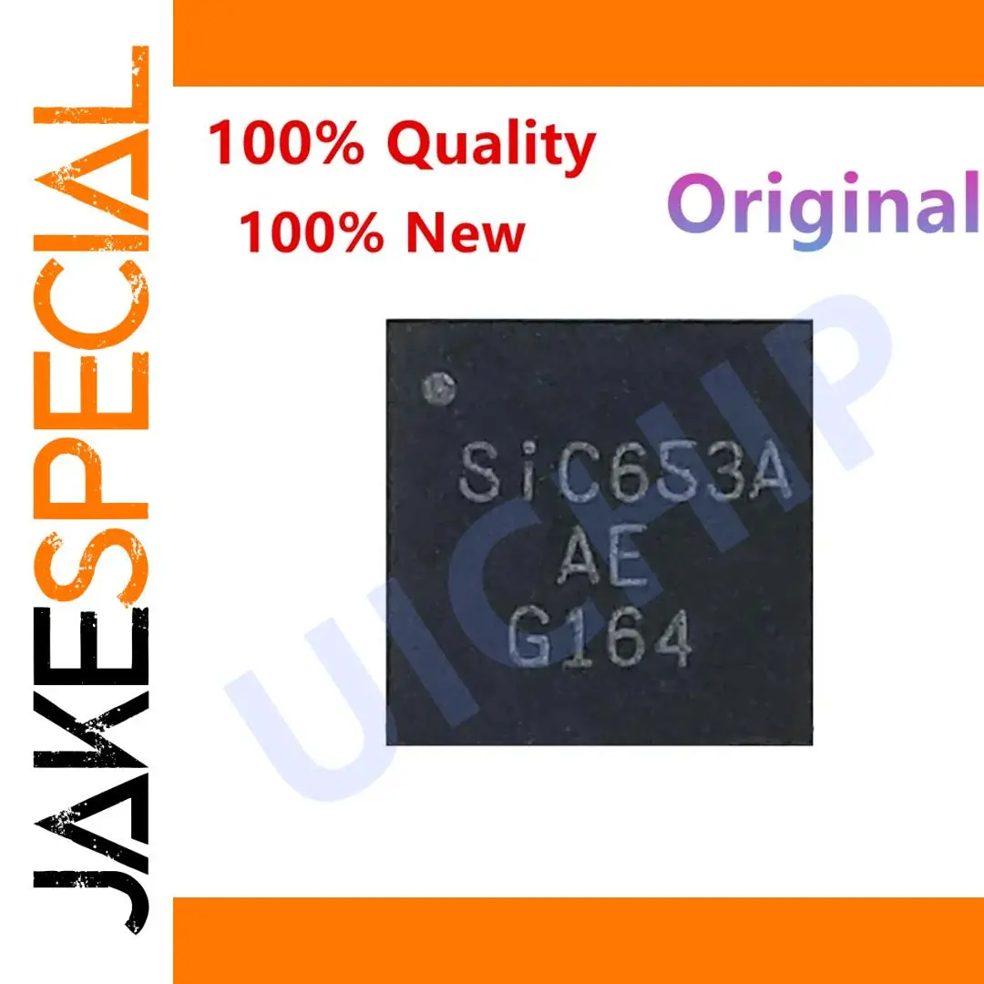 Experience reliable performance with this new SIC653ACD-T1-GE3 driver IC in a QFN package, compatible with SIC653A models. Designed for computer applications, this sleek, black, square-shaped chip features a smooth surface with precise edges and white alphanumeric markings—”SIC653A,” “AE,” and “G164″—centered for easy identification. It operates within standard supply voltage and dissipation power ranges and is suitable for customizable settings. Free from high-concern chemicals, this high-quality IC ensures authenticity and durability, making it a dependable choice for your electronic projects or repairs. Elevate your device’s performance with this genuine, modern component.