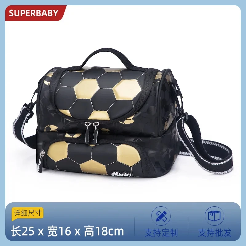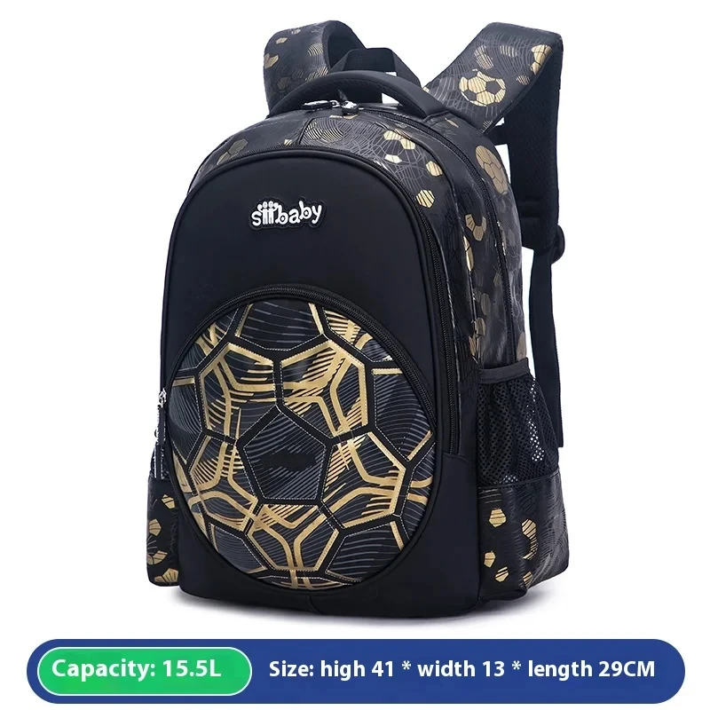 This vibrant Silbaby backpack combines functionality and style, perfect for school and casual outings. The striking black base is enhanced with a unique hexagonal pattern in gold and dark gray, reflecting a sporty soccer ball theme. Crafted from durable Oxford material with a polyester lining, it ensures both strength and wear resistance. With a spacious interior featuring various organizational pockets, including a cell phone pocket, it’s designed to keep belongings in order. The comfortable arcuate shoulder straps and soft handle make carrying a breeze. This backpack is more than just a school bag; it’s a statement piece for young boys who love sports!