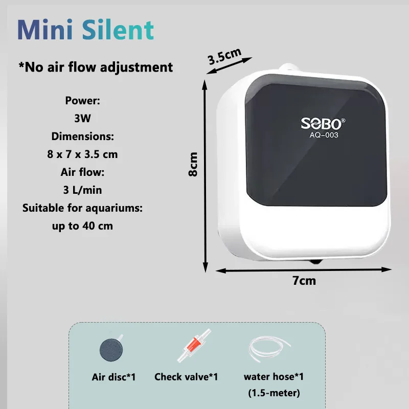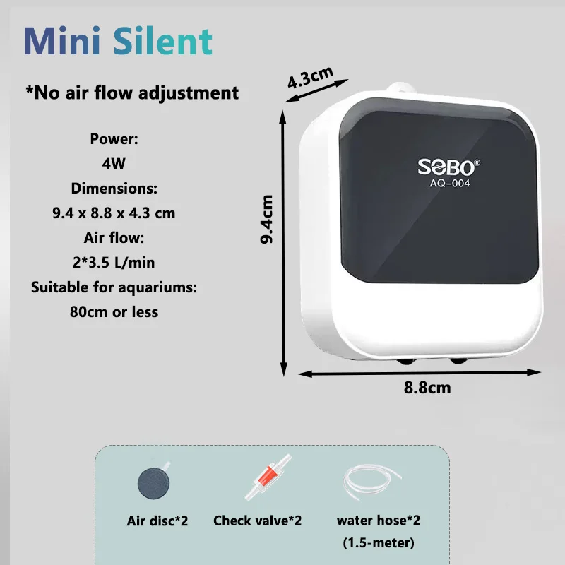 Enjoy peace of mind knowing you're providing optimal oxygenation for your fish and aquatic plants. This pump's stylish design, combined with reliable performance and quiet operation, makes it an ideal choice for dedicated aquarium enthusiasts and outdoor lovers alike. Imagine your aquatic ecosystem thriving with our efficient oxygen pump, transforming your space into a lively, vibrant habitat. Don't wait—enhance your fish tank today and enjoy the difference a high-quality, silent aeration system can make.