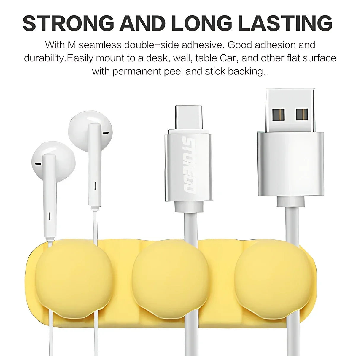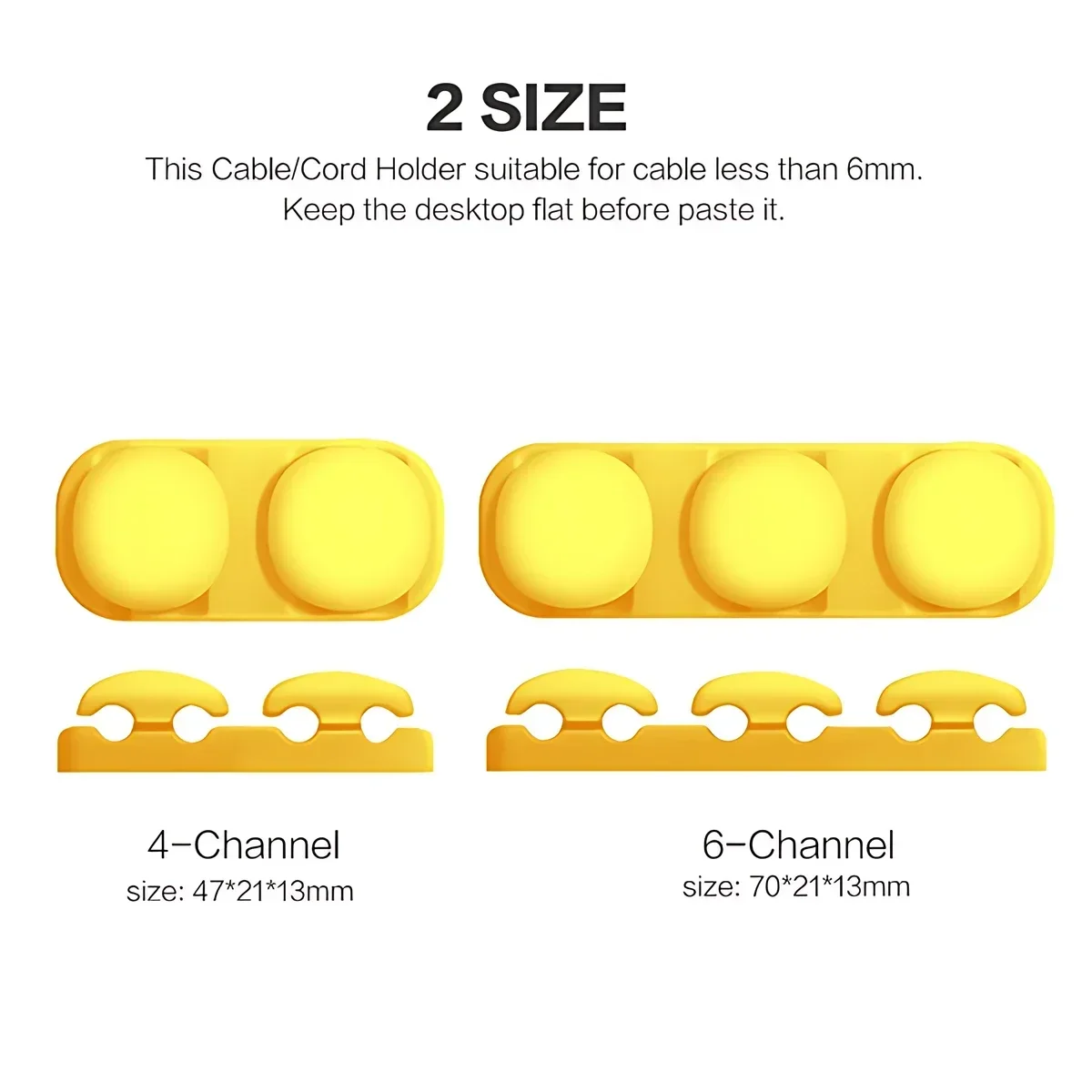 Keep your workspace neat and organized with this versatile silicone cable organizer. Designed for efficiency and style, it features four or six channels to hold various cables securely up to 6mm in diameter. Its smooth, durable silicone surface ensures cable protection while preventing slips or squeezing. The self-adhesive backing allows quick, hassle-free attachment to desks, walls, or near outlets, eliminating clutter and tangling. Its sleek, minimalist design seamlessly blends into any modern electronic setup, making your cables easily accessible and neatly contained. Available in bright yellow, classic black, vibrant green, or calm blue—choose the color that best suits your environment. This organizer simplifies cable management and enhances your workspace’s overall aesthetic.