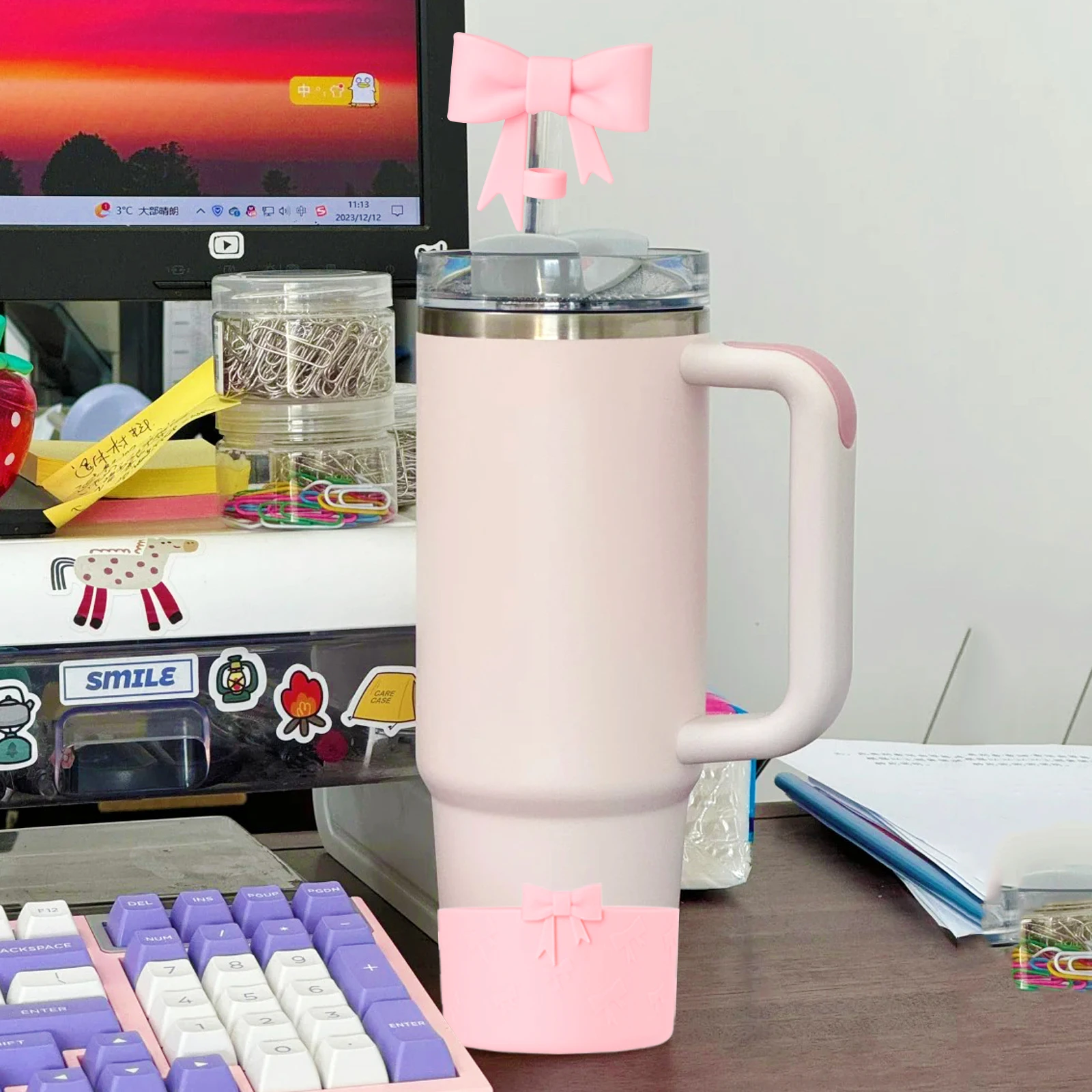 Enhance your drinking experience with this versatile silicone cup cover, measuring 7.5 cm and fitting 12-40 oz universal cups. Crafted from high-quality silica gel, it offers anti-slip and heat-insulating properties, ensuring stability and temperature control. The charming butterfly bow design adds a cute, feminine touch, available in vibrant colors including beige, black, blue, pink, purple, red, rose red, and white. Its universal fit makes it perfect for a range of cup sizes, making your daily routine more stylish and practical. Whether at home, work, or on the go, this heat-insulating cup cover combines functionality with adorable aesthetics for a delightful experience.