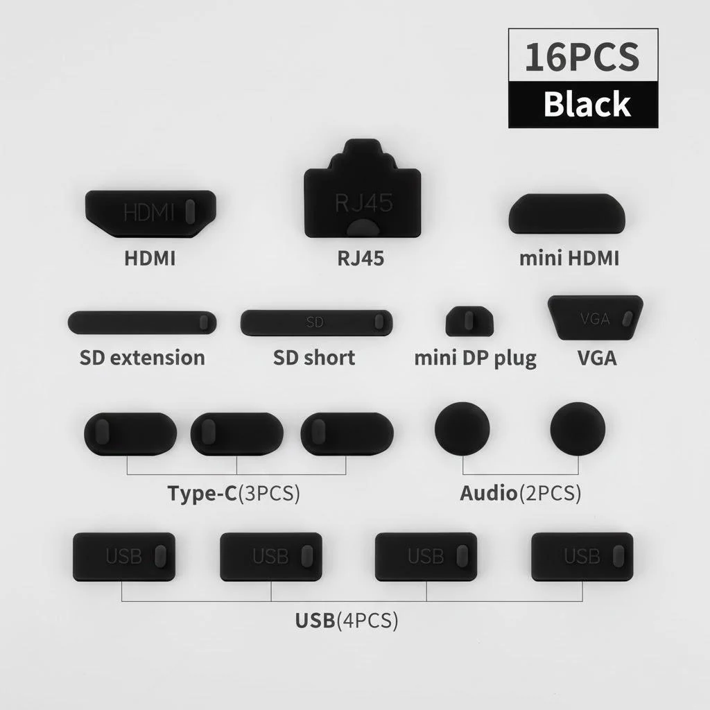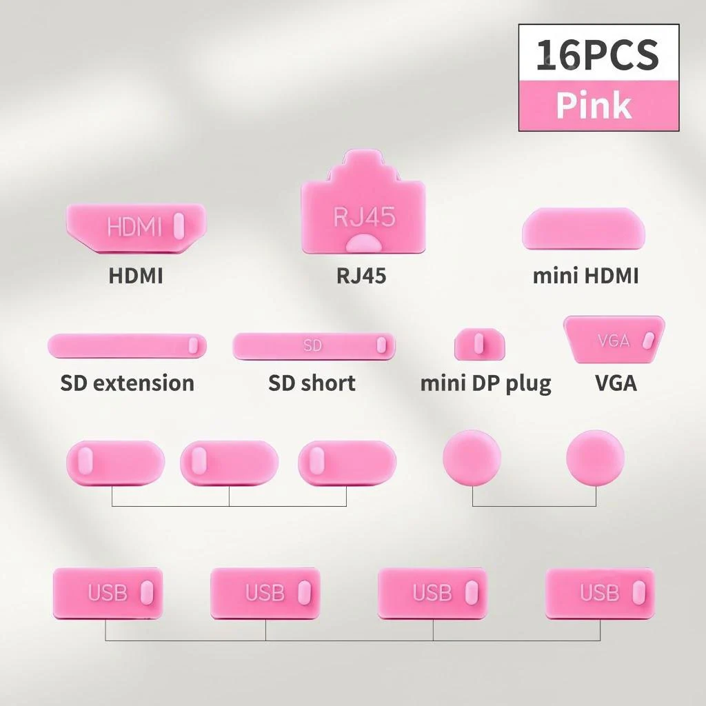 Imagine keeping your electronic gadgets pristine and protected with this versatile set of 16 silicone dust plugs. Crafted from soft, flexible silicone, these waterproof and dustproof covers fit perfectly into various ports on your computer or notebook, such as USB, Type-C, HDMI, SD, VGA, RJ45, eSATA, and audio interfaces. Available in a bright and modern palette of white, black, pink, and blue, they not only serve a functional purpose but also add a pop of color to your workspace. Easy to install and remove, they help prevent dust and moisture from damaging sensitive components while maintaining your device's sleek appearance. Protect your investment effortlessly and keep your tech operating at peak performance.