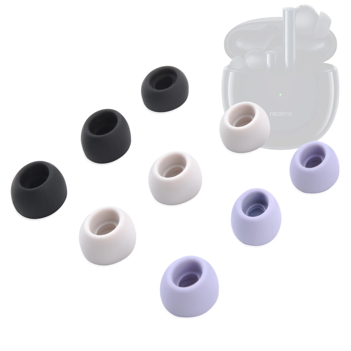 These silicone ear tips are designed to enhance your experience with Realme Air Buds 2 and Realme Buds Air Pro true wireless earbuds. Crafted from premium silicone, these tips offer a smooth matte finish and an ergonomic shape that comfortably contours to your ears. With a precise snap hole design, they fit securely onto your earbuds, ensuring they stay in place during any activity. The anti-slip feature allows you to enjoy workouts or daily commutes without worry. Available in vibrant colors like light purple, black, and gray, these ear tips elevate both your sound quality and comfort, making your listening experience truly enjoyable.