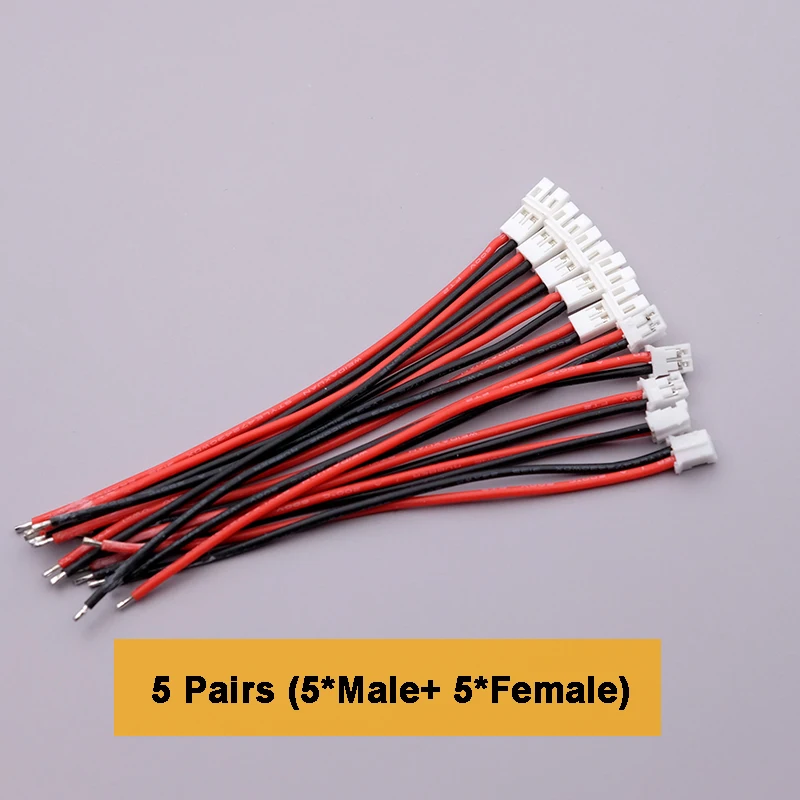 - Each cable set includes five male and five female JST-PH 2.0 connectors, all roughly 5cm in length for versatility and comprehensive coverage in drone wiring.