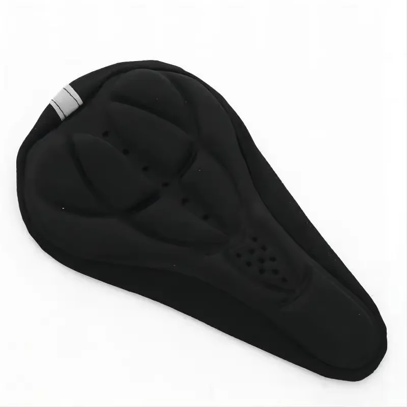 Imagine upgrading your mountain biking experience with this soft, thickened silicone seat cover. Designed for outdoor enthusiasts, it provides exceptional cushioning and support, transforming your standard bike seat into a plush, ergonomic perch. Its contoured shape mimics the natural silhouette of a mountain bike saddle, tapering gently at the front for optimal pressure distribution. The surface features molded patterns, raised sections, and textured areas that improve grip and breathability, ensuring a comfortable ride even on rugged terrains. The black trim edges add a sleek, durable finish, reinforcing stability and attachment. Whether you're hitting trails or commuting, this universal silicone cover effortlessly enhances your comfort and confidence on every ride.