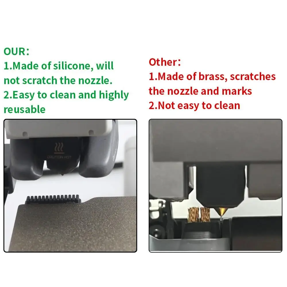 Enhance your 3D printer maintenance with this silicone nozzle cleaning brush, compatible with models like A1 and A1 Mini. The slender, flexible design features a soft silicone surface with evenly spaced, rounded bumps that thoroughly clean nozzles without causing scratches. Lightweight and easy to maneuver, these reusable tools come in sets of 3, 6, 9, or 15 pieces, making it simple to keep your printer in optimal condition. They are designed to reach into tight areas and detailed parts of the nozzle, ensuring a deep and gentle clean every time. No hazardous chemicals are involved in its manufacturing, providing a safe and reliable cleaning solution.