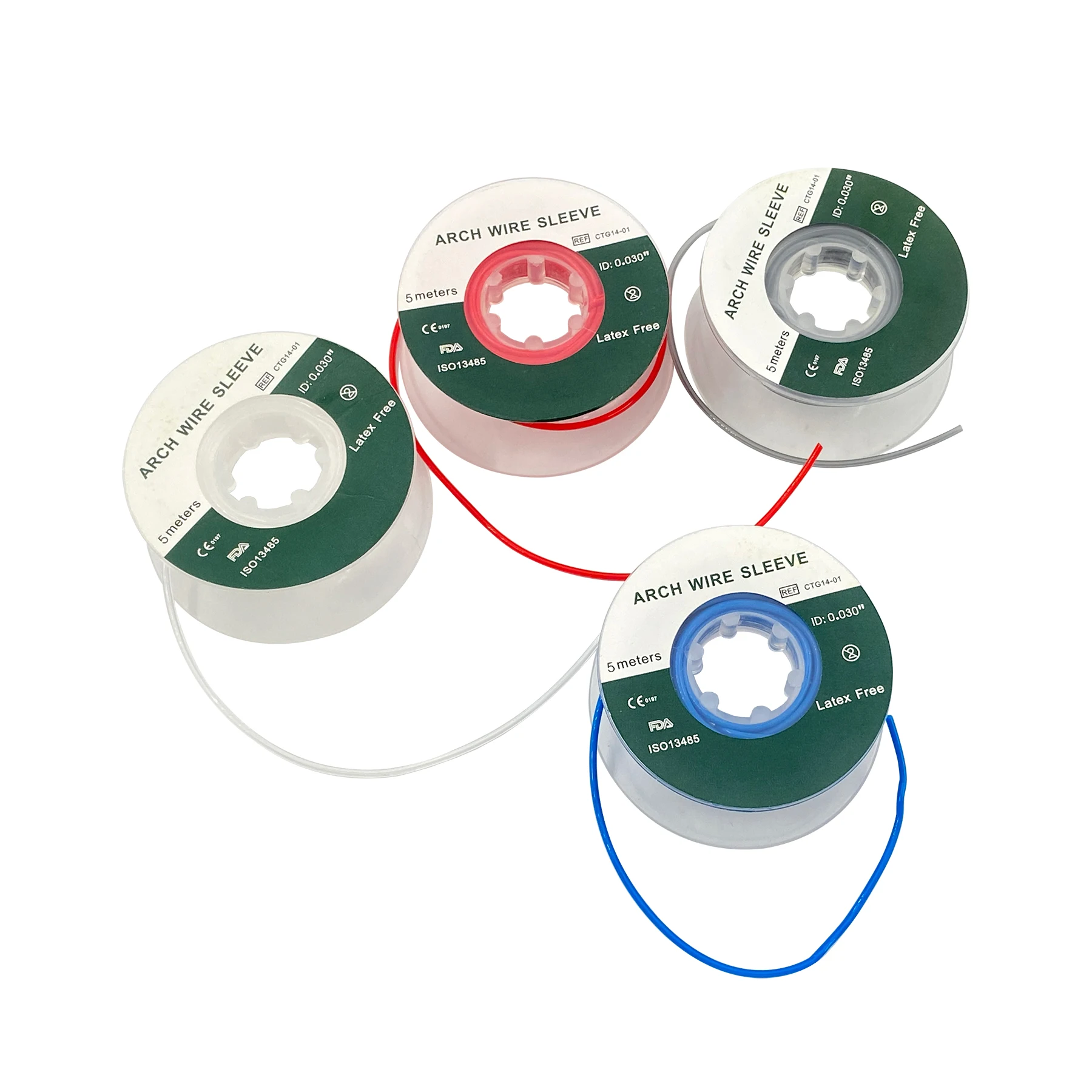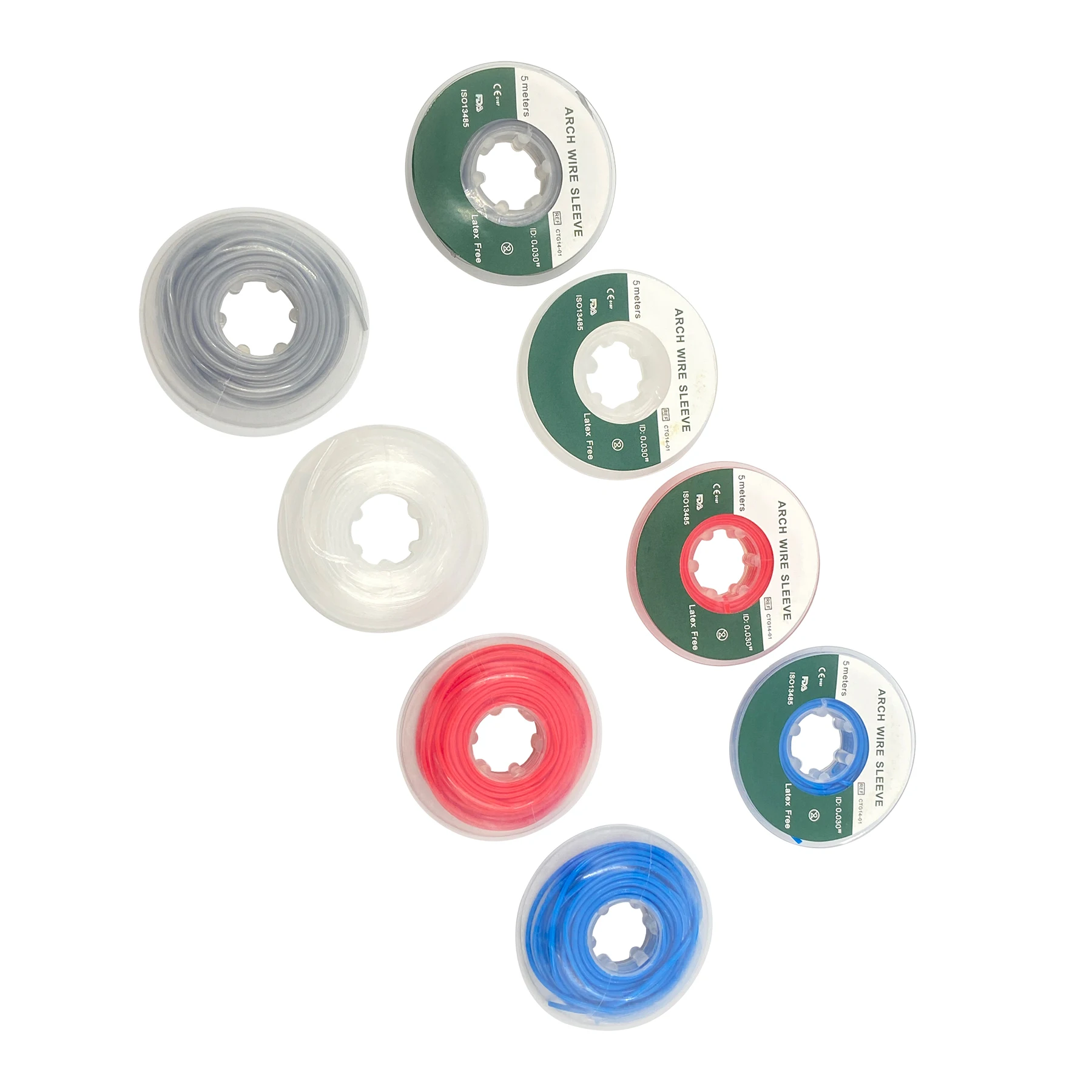 Experience the comfort and precision of this versatile silicone archwire sleeve, designed to enhance your orthodontic treatment. Crafted from soft, transparent silicone, it slides easily over archwires, reducing irritation and preventing food entrapment. Measuring 5 meters per roll, the sleeve provides ample material to customize your braces, offering a snug yet flexible fit for adult patients. Its sleek, round design blends seamlessly into your orthodontic setup, offering both functional benefits and a discreet appearance. The color options—blue, gray, red, and white—allow you to personalize your treatment, blending or contrasting with your braces as desired. This product combines practicality, aesthetic flexibility, and high-quality materials for optimal comfort and performance in adult orthodontic care.