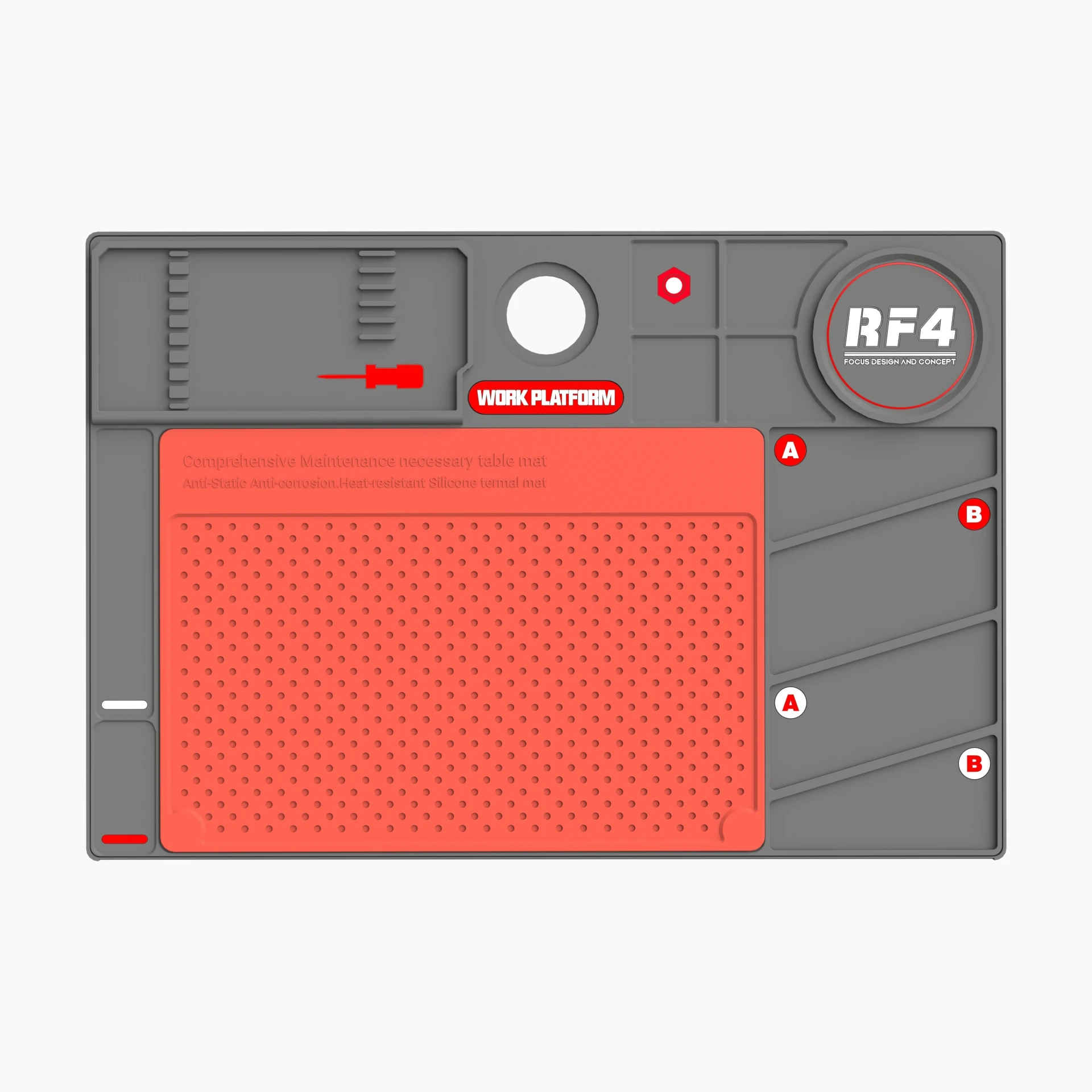 Transform your workspace with the RF4 Insulated Silicone Soldering Mat, engineered for optimal temperature resistance and function. Measuring 260x380mm, it provides ample space for delicate repairs, ensuring your devices are handled with care. This mat withstands temperatures up to 500°C without suffering deformation, thanks to its sturdy honeycomb structure which offers superior durability. The flame retardant and anti-slip features ensure a safe working environment, whether you are soldering circuit boards or repairing electronic gadgets. Elevate your repair game and make every project successful with this exceptional maintenance platform!