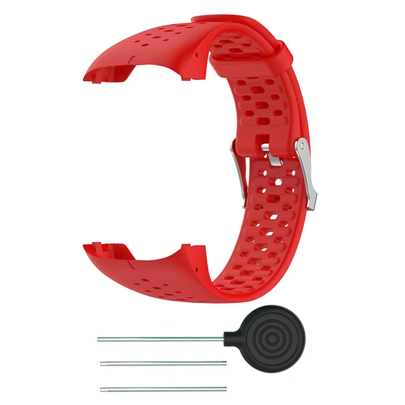 Enhance your Polar M400 and M430 GPS Sports Smart Watches with our vibrant Silicone Wristband Straps, available in eight eye-catching colors: Black, White, Blue, Red, Orange, Gray, Purple, and Green. Crafted from soft, flexible silicone, these bands provide superior comfort and are friendly to your skin. Featuring evenly spaced perforations for breathability, each strap has a sturdy metal buckle for secure fastening and easy adjustments. The package includes one replacement watch band, a tool for effortless installation, and two pins for secure attachment, ensuring a hassle-free experience. Upgrade your smartwatch style effortlessly and comfortably!