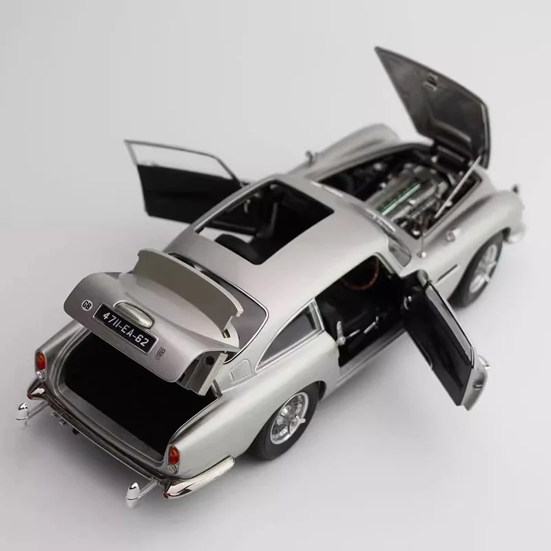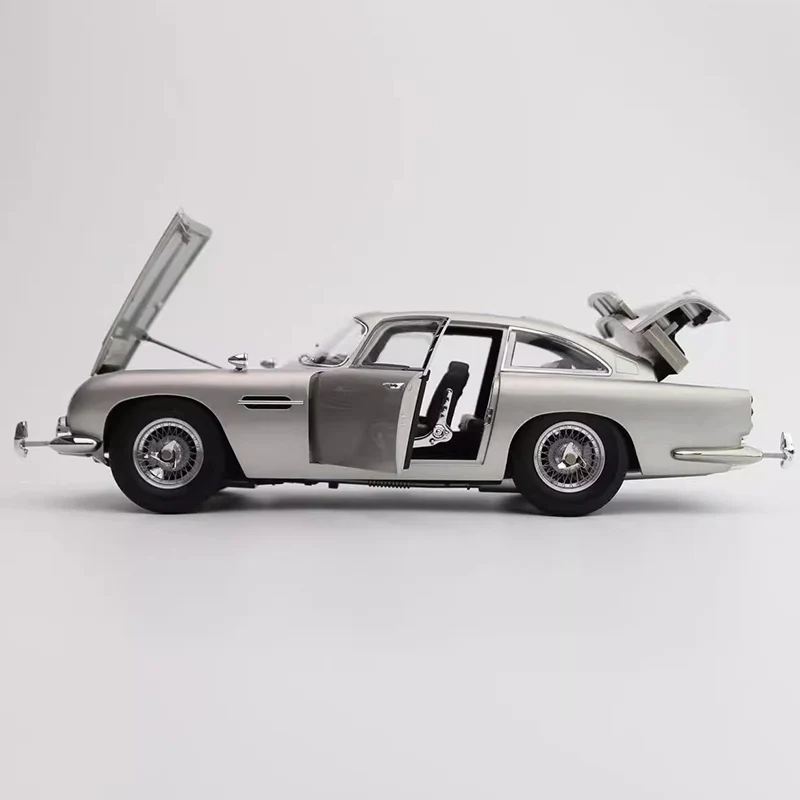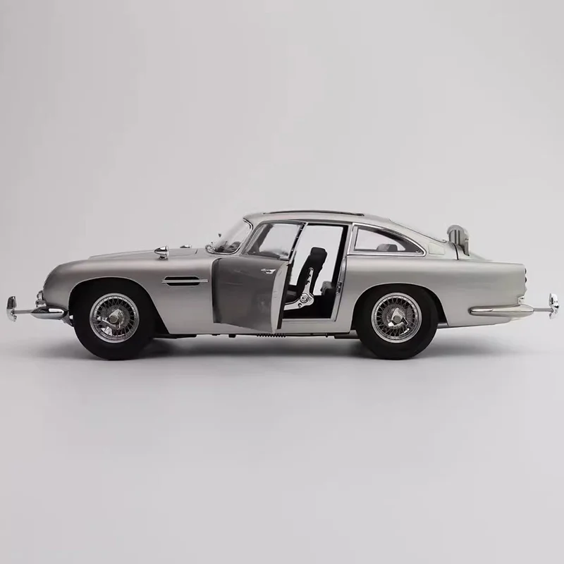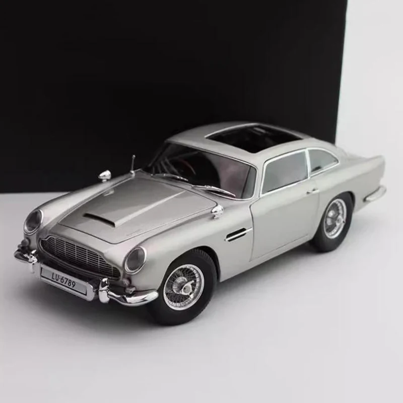 Imagine owning a piece of vintage elegance—this highly detailed 1/18 scale alloy model of the classic Aston Martin DB5 captures the spirit of timeless design. Finished in a reflective silver metallic coating, it highlights the sleek, curved body lines and distinctive features of the original car. The model’s retro coupe silhouette is accentuated by finely crafted chrome trims, wire-spoke wheels with silver hubcaps, and authentic front grille details. The clear windows with chrome frames, the subtle side vents, and the darker panoramic sunroof add depth and realism to this collectible piece. Whether displayed proudly in your collection or admired up close, this model invites you to experience the beauty of an iconic vehicle without leaving your home.