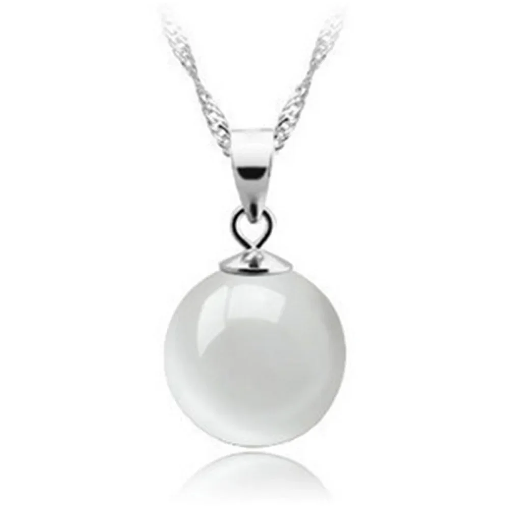 - The necklace features a 10mm spherical, opal-like artificial gemstone pendant with a smooth, polished surface for a luminous glow. Made from durable stainless steel and Tibetan silver, ensuring lasting shine.