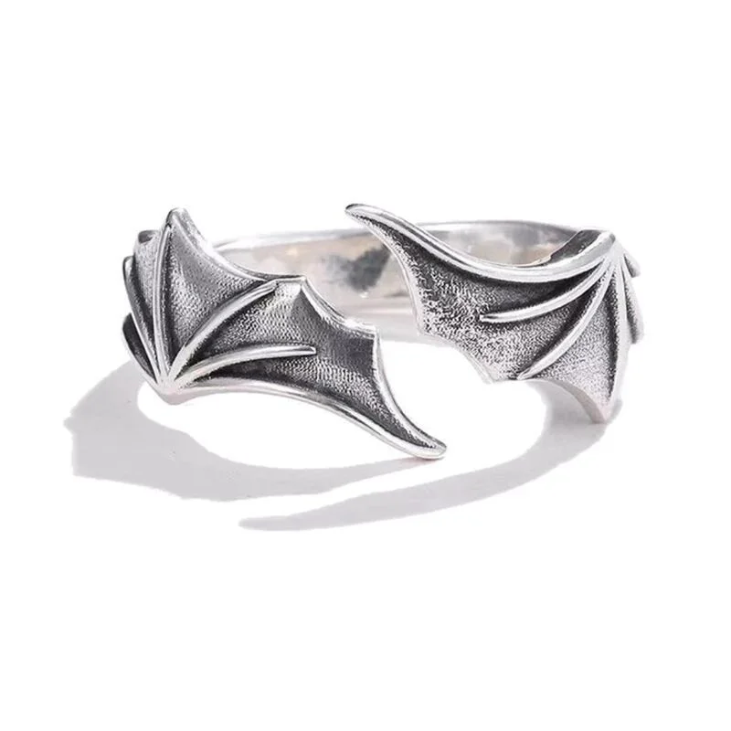 This set features two unisex zinc alloy rings with a vintage-inspired angel wing and demon eye design, each measuring 2mm in surface width. Crafted with a sleek silver finish, these adjustable rings showcase detailed, textured patterns that exude a punk, edgy style perfect for casual or party wear. The angel wing design presents layered, feather-like textures with a matte surface and subtle shine, while the demon eye features stylized, pointed, wing-like motifs with fine lines and a distressed metallic look. Both rings are lightweight, unisex accessories that enhance any bold fashion statement and are sure to complement your unique style every time you wear them.