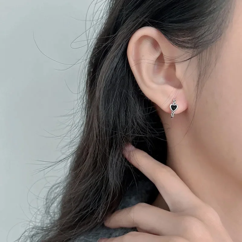 Imagine yourself sporting these elegant hoop earrings at your next event or daily outing, feeling confident and stylish. Their lightweight, bold design makes them an effortless addition to any wardrobe. Don't miss the opportunity to enhance your fashion with a pair of earrings that perfectly blend trendy aesthetics with comfort. Add these black heart inlay hoop earrings to your collection today and enjoy their versatile charm for years to come. Your perfect accessory awaits!