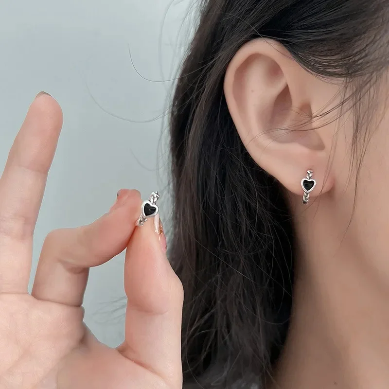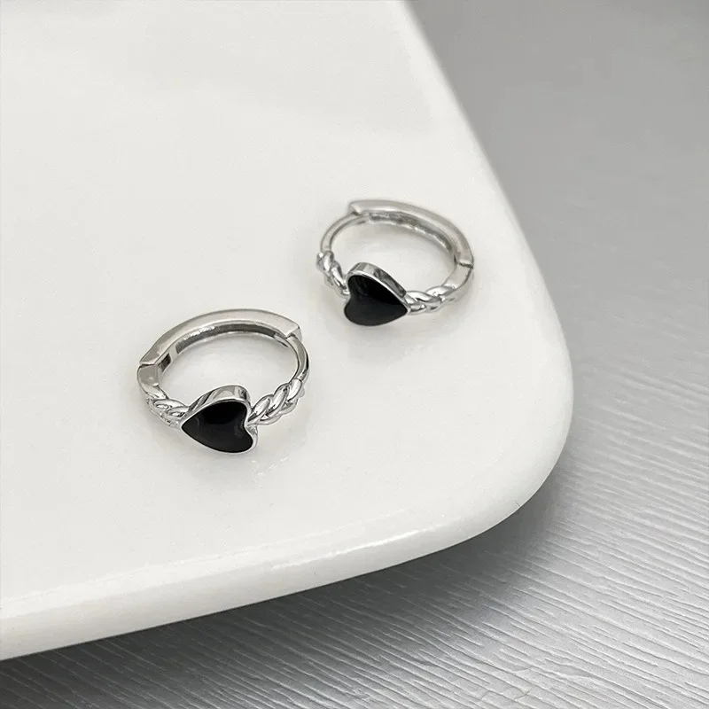 This Stylish Silver-Black Heart Hoop Earrings for Women
