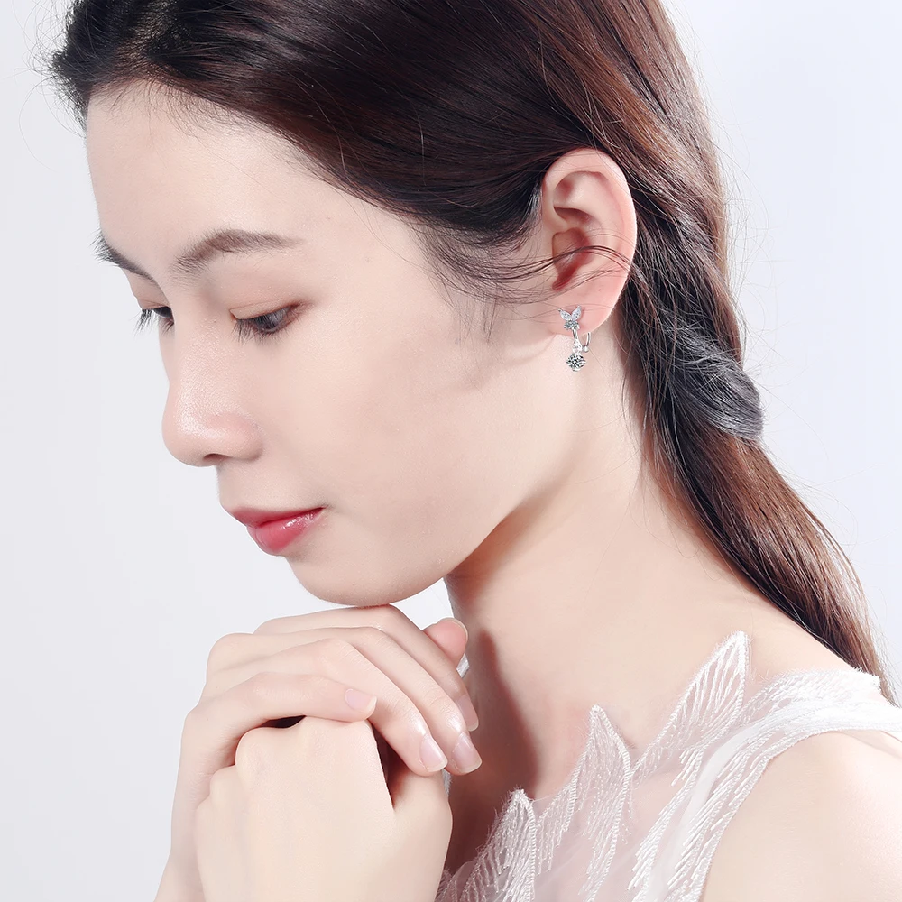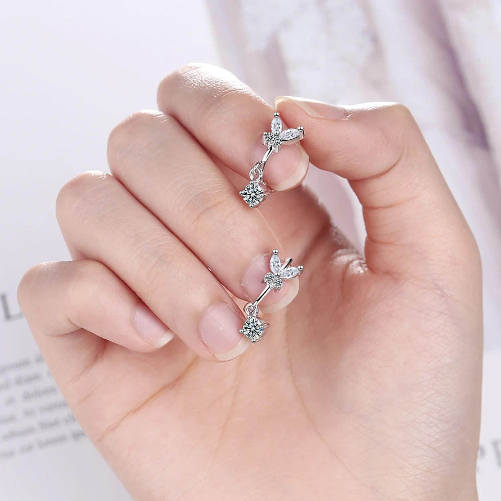 Experience the charm of these beautiful earrings that combine delicate design with timeless elegance. Crafted from 925 sterling silver, these earrings weigh approximately 0.84 grams each, offering a lightweight yet sophisticated accessory. The design features an adorable bow knot paired with butterfly-inspired elongated marquise-cut zircon crystals that sparkle with every movement. Small cubic zirconia accents enhance their romantic and cute appeal. Perfect for elevating both casual and formal outfits, these earrings are suitable for all seasons and occasions like parties, office wear, or as a heartfelt gift. Their shiny silver finish complements various styles, making them an essential addition to your jewelry collection. Securely fastened with a push-back closure, they promise comfort and style all day long.