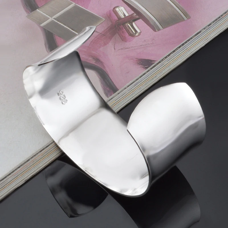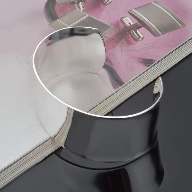 Experience timeless elegance with this unisex 925 sterling silver cuff bracelet featuring a sleek 30mm wide, smooth, open design. Measuring 6.50cm in diameter and weighing 32 grams, this resizable piece offers a comfortable, modern fit with a polished, reflective finish. Certified with a 925 stamp, it’s anti-allergy and suitable for various occasions including weddings, engagements, and parties. Its minimalist geometric shape exudes sophistication, making it a versatile addition to any jewelry collection. Perfect for gifting or personal adornment, this high-quality bracelet supports customization and arrives brand new, ready to enhance your style for years to come.