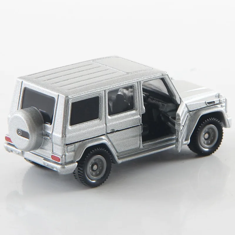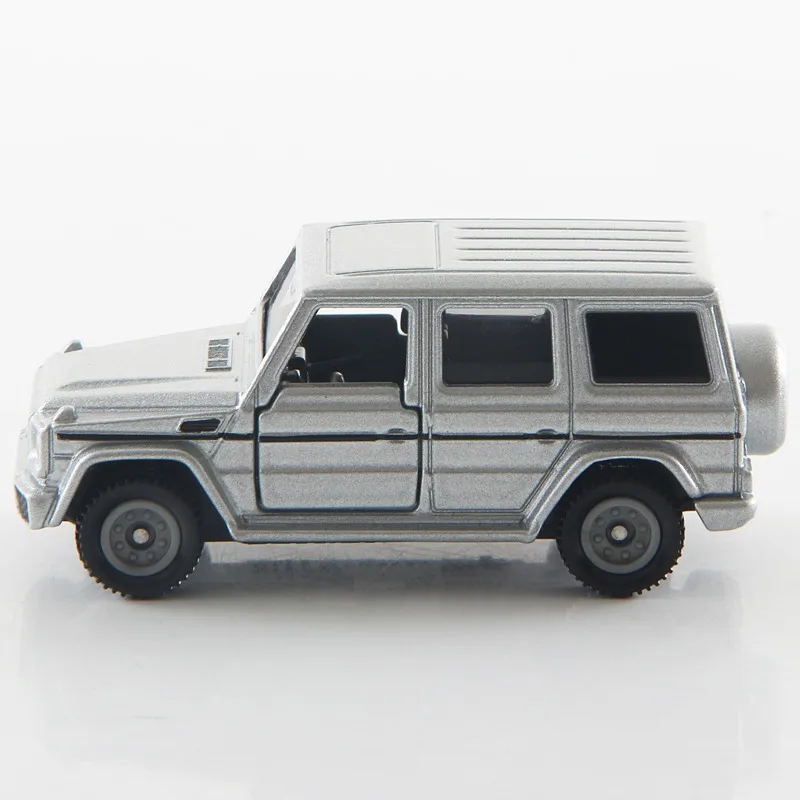 This 1:64 scale die-cast alloy model car features a sleek silver finish, detailed design, and realistic proportions, making it an ideal collectible or decorative ornament. Crafted from durable metal, it showcases crisp edges, a bold front grille with horizontal slats, detailed round headlights, textured bumper, and black wheels with silver hubcaps, all ensuring a high-quality appearance. Its boxy shape, flat hood with subtle lines, steeply inclined windshield, rectangular side windows, and molded door handles reflect meticulous craftsmanship. Suitable for enthusiasts aged 14 and above, this non-electronic model is perfect for display, collection, or as a thoughtful gift, embodying sophisticated automotive design in miniature form.