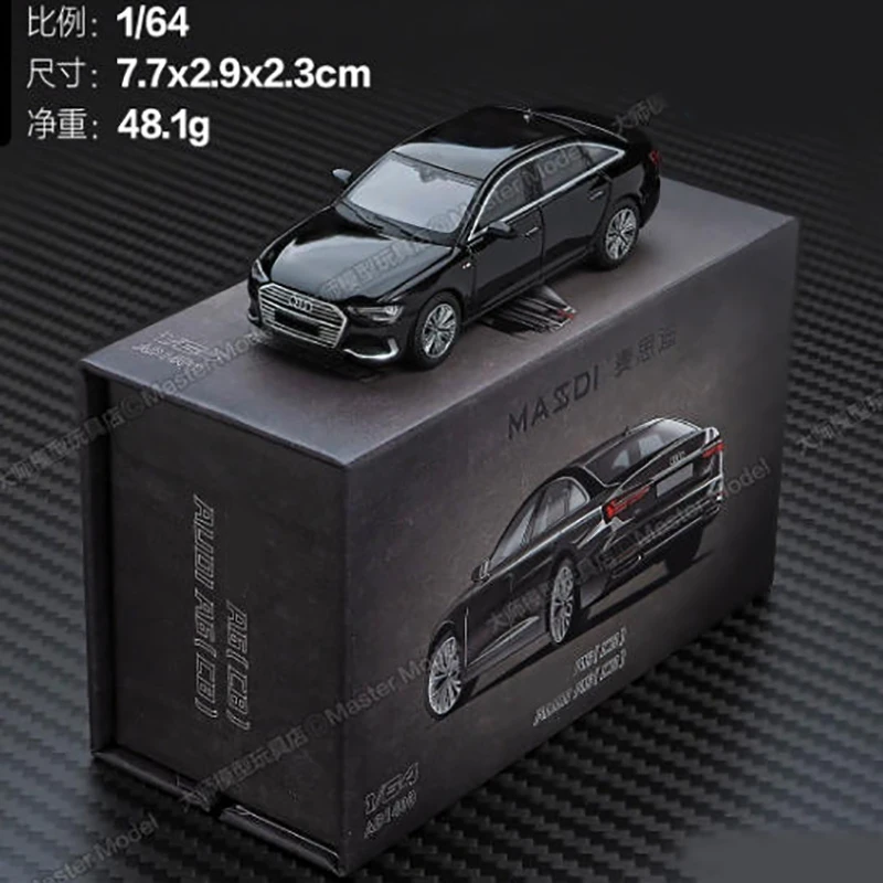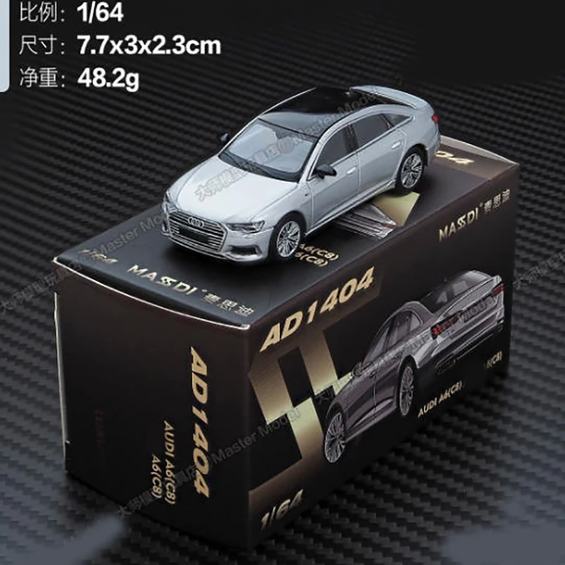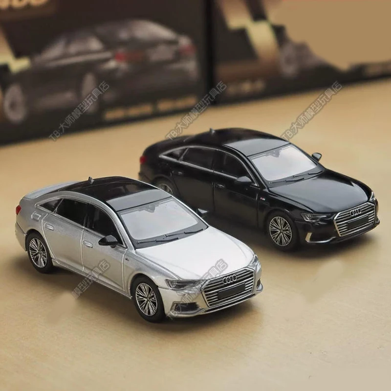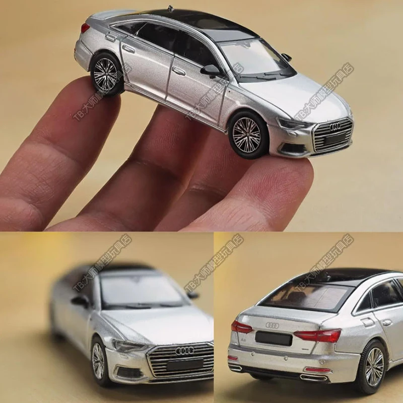 Experience the elegance of this meticulously crafted diecast model car, which perfectly captures the sleek design and aerodynamic contours of the full-sized Audi A6 sedan. With a stunning metallic silver finish, this 1:64 scale replica measures approximately 7-10 centimeters long, making it an ideal addition to any collection or display. Its finely detailed features include a prominent front grille with horizontal slats and the distinctive four-ring logo, narrow angular headlights, black side mirrors, and clear windows revealing an intricate interior. The finely sculpted body is accented with realistic alloy multi-spoke wheels and textured tires. This model embodies a perfect blend of modern style and refined realism, allowing you to bring a touch of automotive elegance into your space.