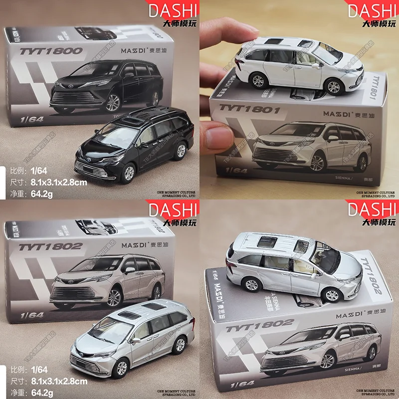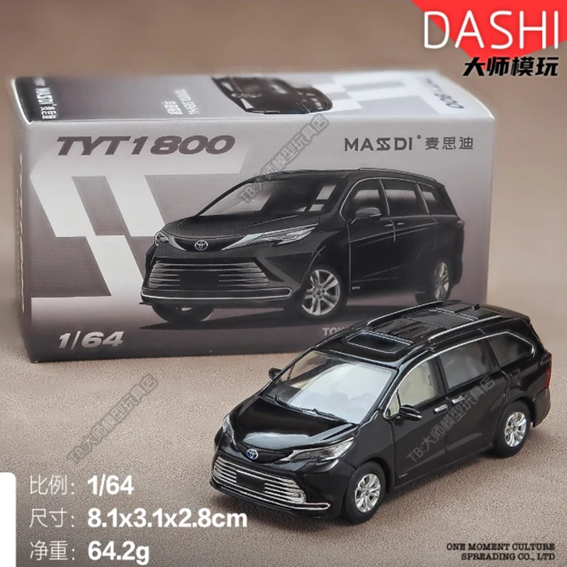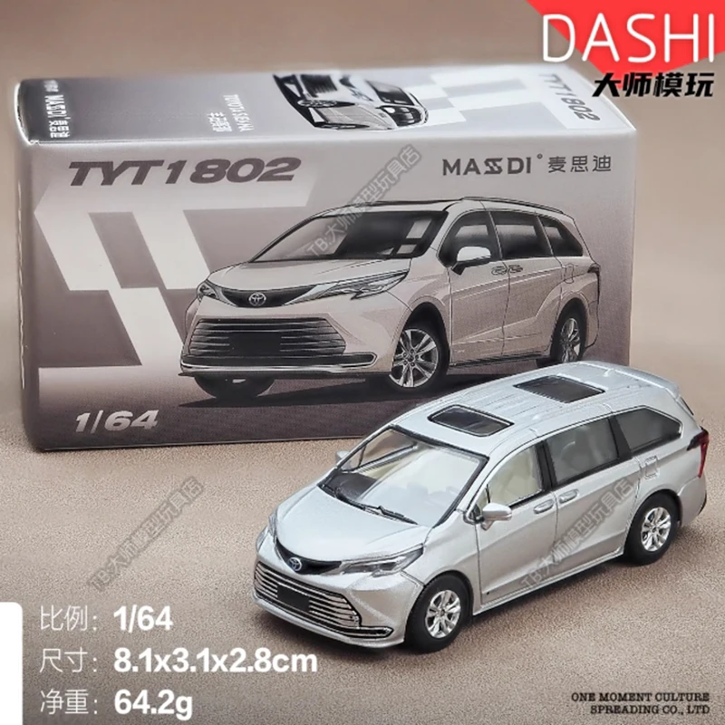 Experience the elegance and modern design of this finely crafted diecast model of the Toyota Sienna MPV, meticulously scaled at 1:64. With a sleek silver metallic finish, it features a glossy, reflective surface that highlights every detail, from the contoured hood to the elongated, slim headlights. Its streamlined shape is complemented by subtle details like the stylish grille with horizontal lines, a prominent Toyota emblem, tint-appeared windows framed in black, and a sophisticated sunroof. Measuring approximately 8 centimeters long, 3.6 centimeters wide, and 3 centimeters high, this model exudes high-quality craftsmanship. Made from durable alloy and ABS plastic, it offers a realistic appearance perfect for collectors, enthusiasts, or as a high-end decorative piece for display. Adding this model to your collection means owning a beautiful piece that captures modern automotive aesthetics. You will enjoy the attention to detail and superb finish that make this model stand out. Its compact size makes it an excellent display item, instantly enhancing any collection or display case. Whether you're a car enthusiast or a collector, this model is designed to impress with its sleek design and precise craftsmanship, bringing a touch of sophistication to your space.