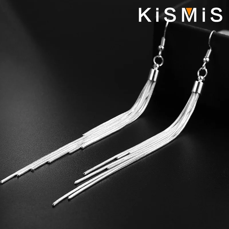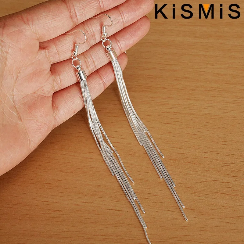 Imagine elevating your style effortlessly with these elegant long tassel drop earrings. Crafted from durable aluminum alloy, they shine with a sleek silver finish that captures attention. Measuring 14.6 centimeters in length, each earring features a modern, layered tassel design composed of thin, evenly spaced chains that hang gracefully. The chains taper slightly at the tips, creating an elegant, lightweight silhouette that moves beautifully with you. The classic hook fastening ensures easy wearing and removal, making these earrings perfect for both casual and formal occasions. Whether you're dressing up for a night out or adding a touch of sophistication to your everyday look, these earrings offer a contemporary and fashionable touch to any outfit.