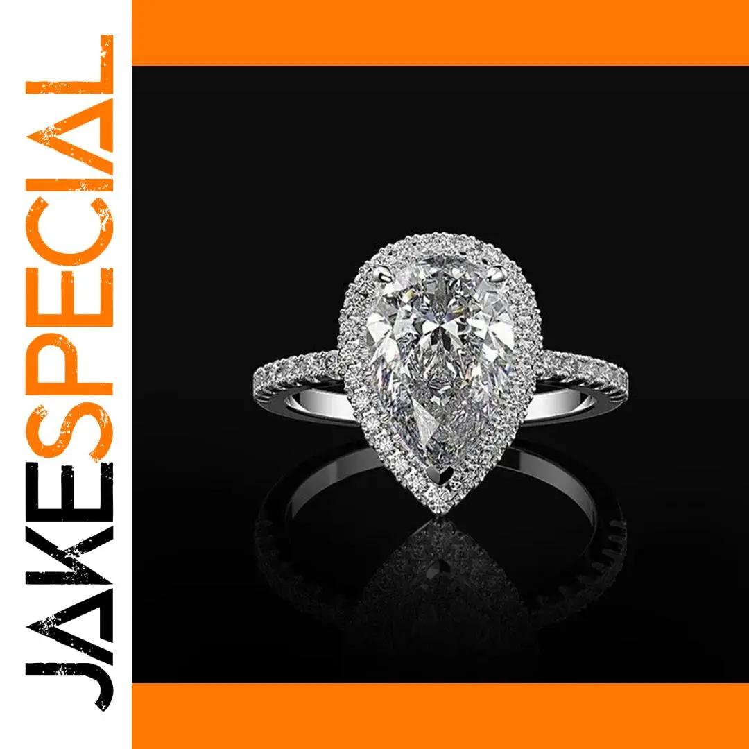 - Features a 8mm-wide surface with a prong setting that securely holds a large, teardrop-shaped clear zircon stone, mimicking a diamond's brilliance and clarity.