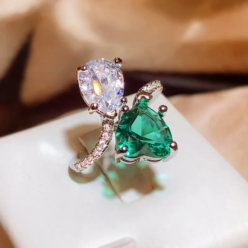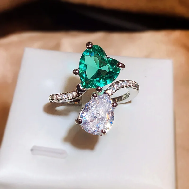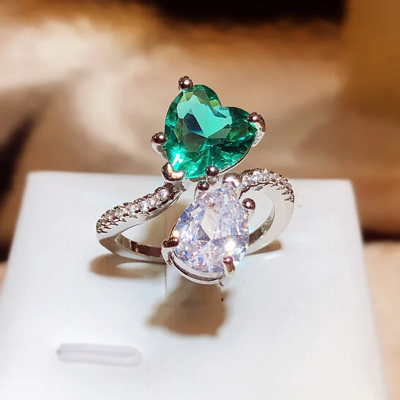 Discover the perfect symbol of love and style with this beautiful silver heart-shaped engagement ring. Its radiant green and white stones, combined with elegant craftsmanship, make it a unique gift or personal treasure. Whether celebrating a special moment or simply enhancing your everyday look, this ring embodies romance and sophistication. The high-quality materials ensure durability, making it a timeless addition to your jewelry collection. Elevate your style and express your love with a piece that’s as meaningful as it is beautiful. Place your order now and step into a world of elegance and charm.