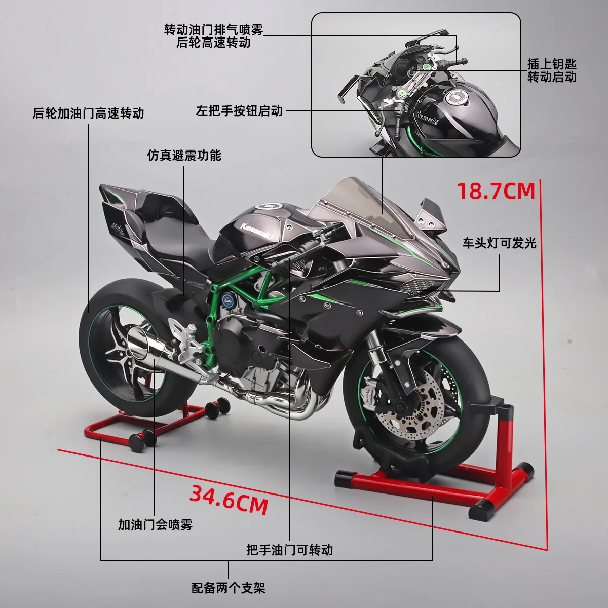 Add this exceptional Kawasaki H2R model to your collection today and experience the thrill of owning a miniature racing masterpiece. Its premium construction, stunning metallic finish, and illuminated details make it a striking display piece that’s sure to impress. Perfect for enthusiasts seeking true authenticity in a collectible, this model offers both aesthetic beauty and technical precision. Whether as a gift or a personal highlight, you'll enjoy the admiration and conversations that this dynamic, high-end miniature invites. Secure yours now and elevate your collection to professional racing status!