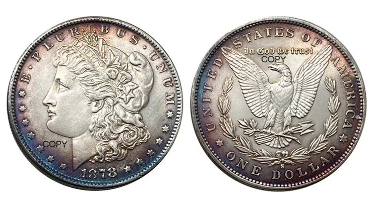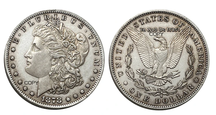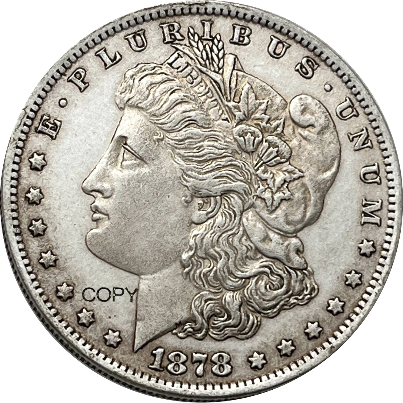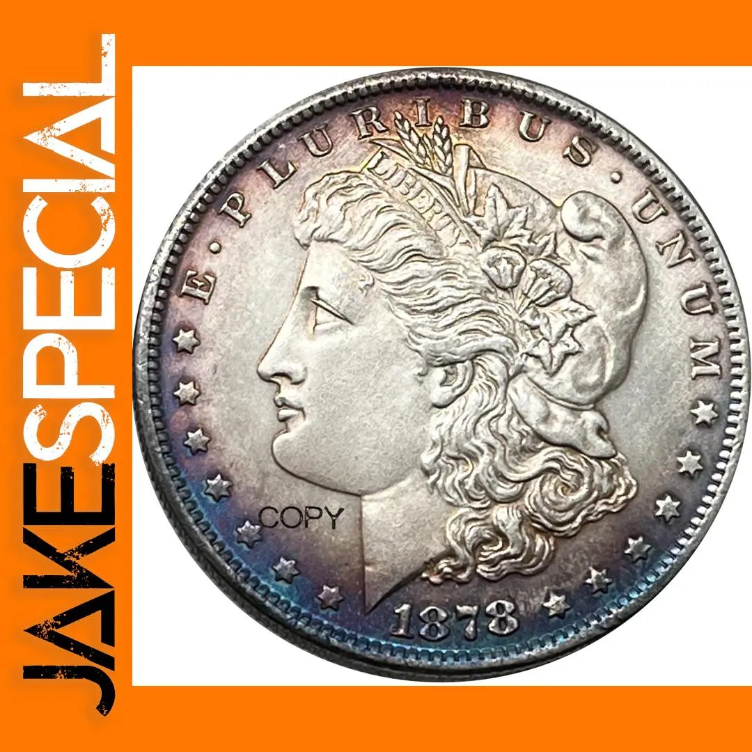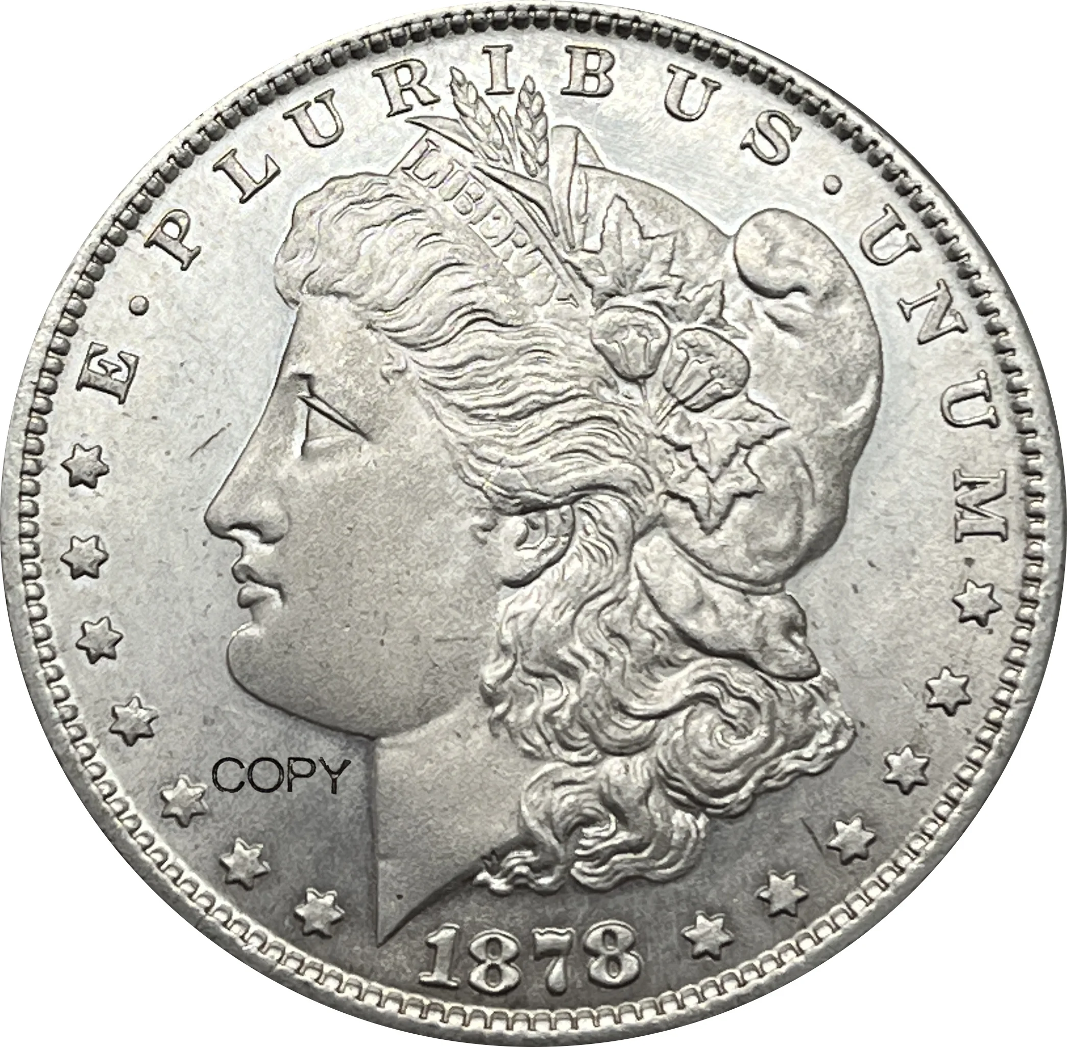 Experience the timeless charm of this highly detailed replica of the 1878 Silver coin, crafted with exceptional craftsmanship. Featuring a classic design, it showcases a portrait of Lady Liberty facing left, adorned with a laurel crown and flowing waves in her hair. The surface boasts a polished silver finish with an antique matte patina that enhances its vintage aesthetic. Encircled by a border of tiny beads, the design also features the inscription “E Pluribus Unum” with small stars separating each word, and the date “1878” at the bottom. This piece radiates historical elegance and artisanal detail, making it a perfect collectible or display item. Its durable metal construction ensures lasting beauty and an authentic look for years to come.