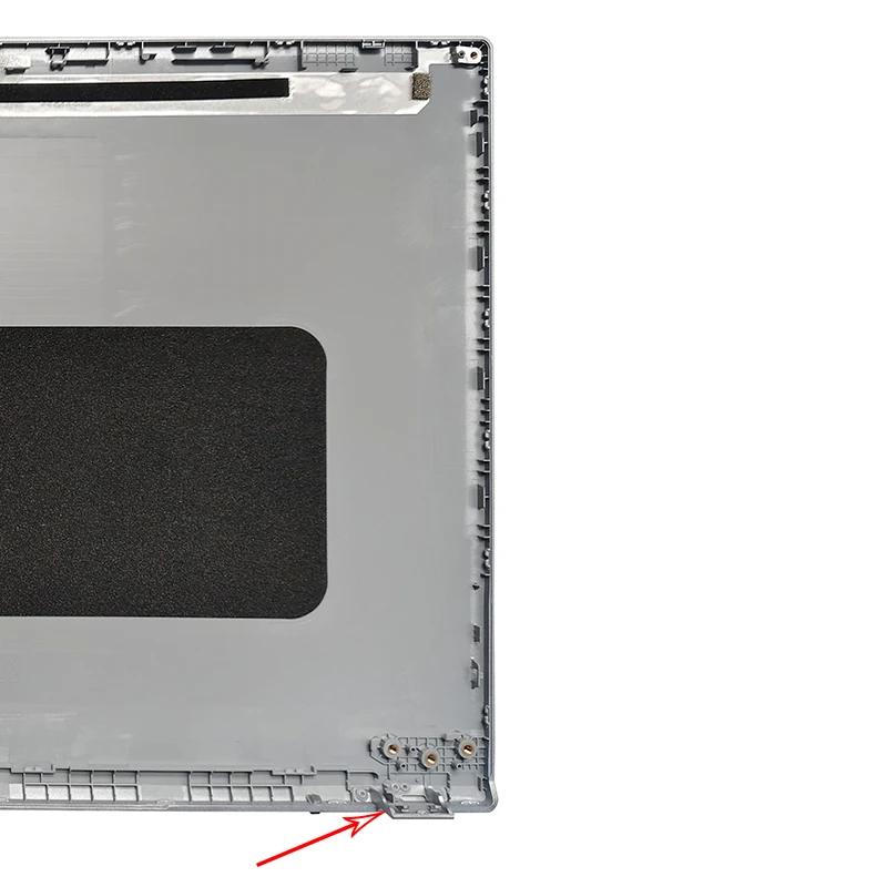 - Its rectangular shape with rounded corners includes numerous small screw holes and mounting points, ensuring secure attachment to your laptop’s frame.