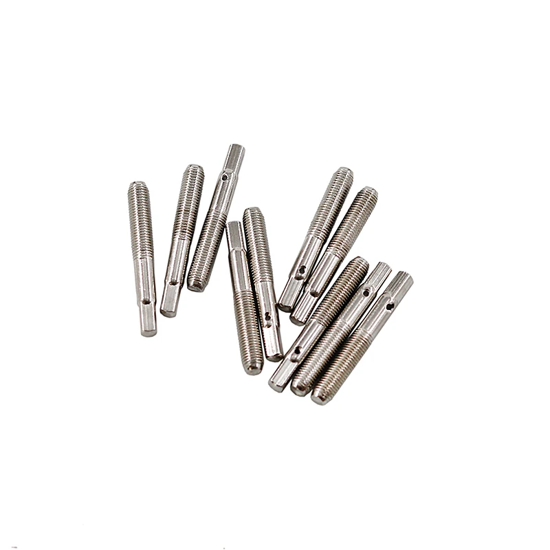 Step into the world of precise musical instrument repair with this set of ten Leyacan String nails. Crafted from shiny, metallic silver material, these nails boast a sleek, polished finish that reflects light beautifully. Designed for small harp string repairs, they feature uniform dimensions, a smooth cylindrical shaft, and a threaded section at one end for easy installation. Some include a tiny drilled hole near the top, adding to their practicality and aesthetic appeal. Ideal for maintaining and restoring the delicate strings of your favorite instruments, these high-quality repair accessories promise durability and precision. With their minimalist yet functional design, they seamlessly blend craftsmanship with performance, ensuring your stringed instruments stay in top condition for years to come.