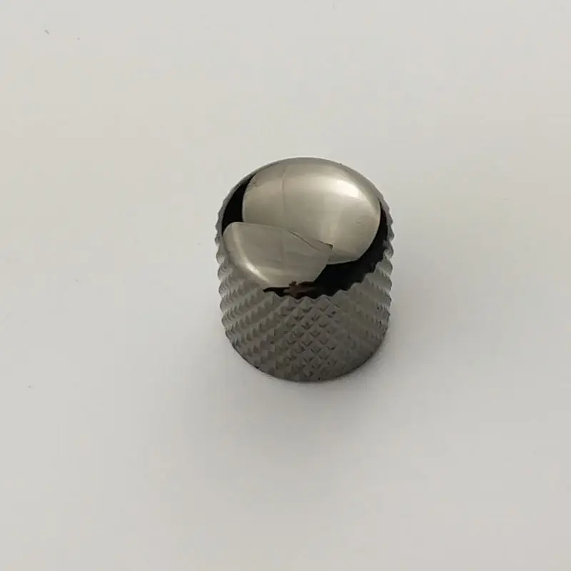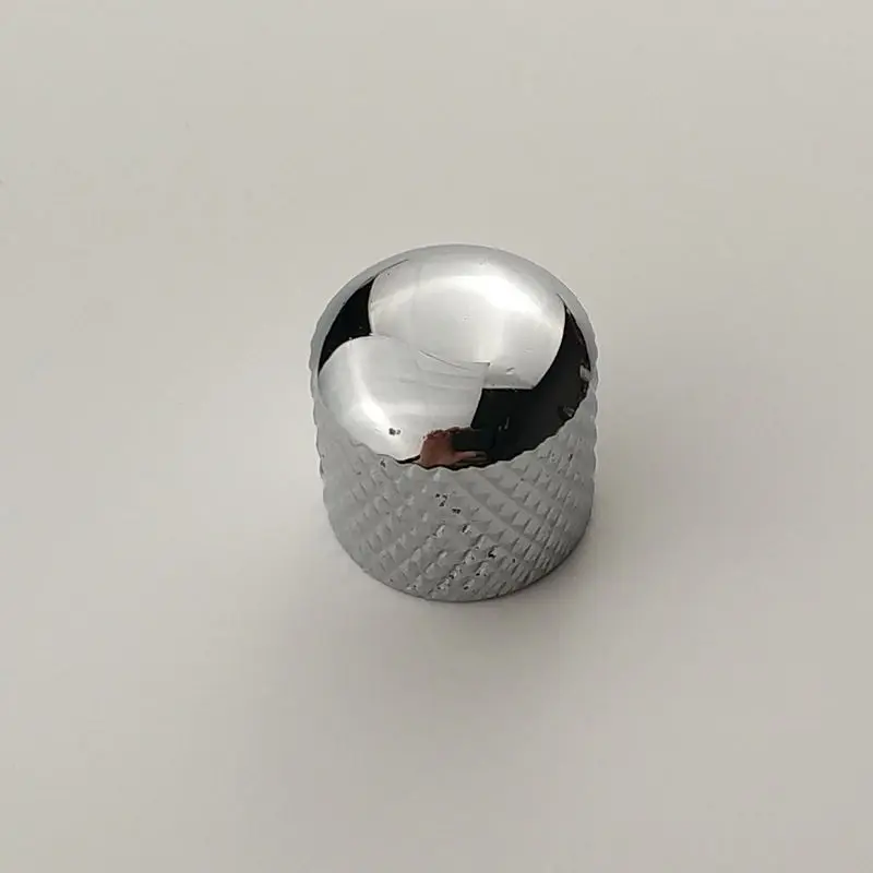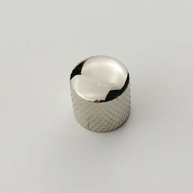 Enhance your electric guitar or bass with this sleek metal control knob, designed specifically for tone and volume adjustments. Its cylindrical shape with a polished, reflective top adds a modern and stylish touch to your instrument. The textured knurled sides ensure a firm grip, making it easy to adjust during performances or practice sessions. Crafted from durable, corrosion-resistant metal, this knob offers longevity and reliable performance. Compatible with various electric guitars and basses, its subtle silver finish seamlessly complements any instrument style. Whether you're upgrading or replacing existing control knobs, this product ensures precise control and an aesthetic upgrade to your gear. Elevate your sound and style effortlessly with this refined component.