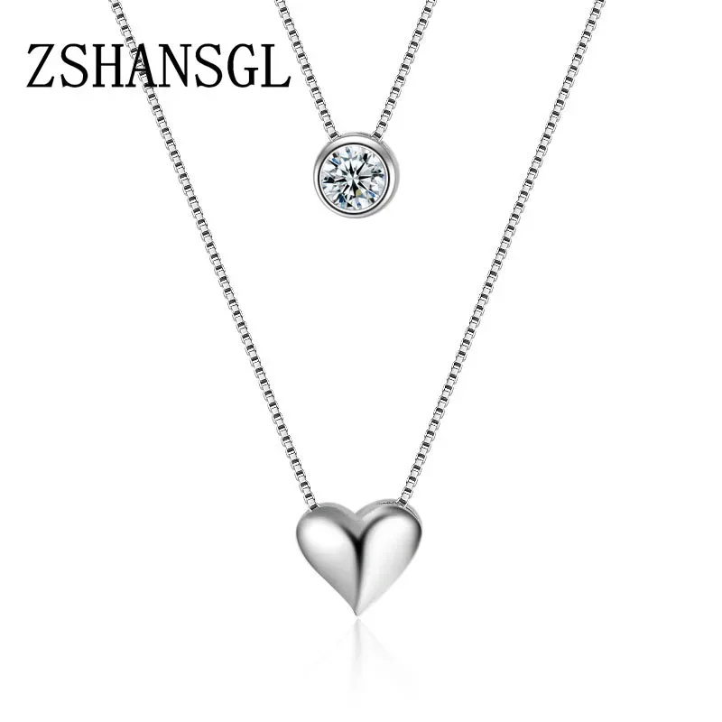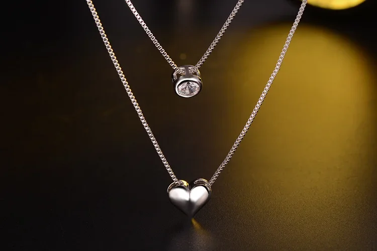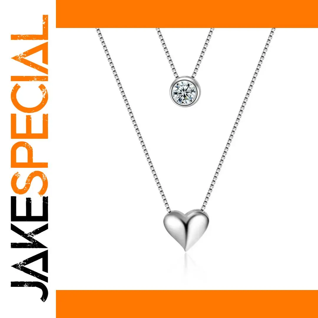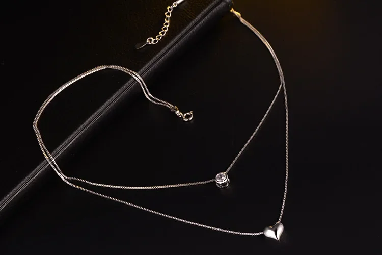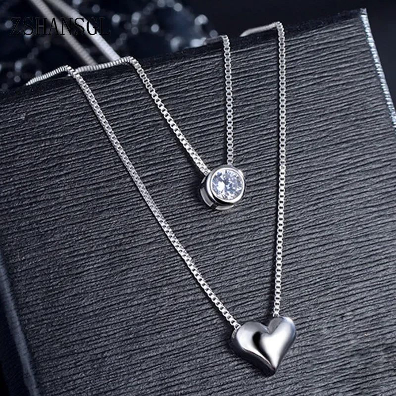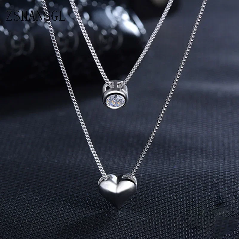 Imagine adding a touch of sophistication to your everyday style or special occasion with this stunning necklace. Crafted from high-quality 925 sterling silver, it features a delicate double-layered chain with finely detailed link links that catch the light beautifully. Two gorgeous pendants adorn the chain: an upper circular bezel setting with a large, sparkling zircon stone that mimics a diamond’s brilliance, and a sleek, three-dimensional heart-shaped charm with a polished, glossy surface. Perfect for weddings, anniversaries, or as a heartfelt gift, this necklace exudes modern elegance while remaining lightweight at approximately 3 grams. Its versatile design complements many outfits, making it a must-have for any jewelry collection.