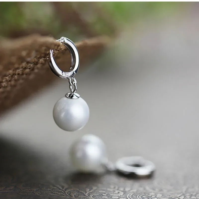 Imagine elevating your look with these elegant silver pearl earrings that effortlessly combine modern design with timeless appeal. Crafted from 925 sterling silver, each earring features a sleek, polished circular hoop that adds a contemporary touch. Dangling from the hoop is a lustrous imitation pearl, providing an airy, sophisticated feel perfect for any occasion—be it a casual day at work, a romantic evening, or a festive celebration. The geometric pattern and smooth finish highlight meticulous craftsmanship, making these earrings not only fashionable but also versatile. Weighing approximately 1.3 grams, they offer all-day comfort while making a subtle statement of elegance. Choose these earrings to bring a polished and refined aura to your personal style.