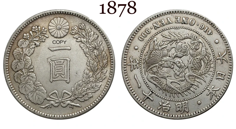 Silver-Plated 1878 Japanese Yen Replica for Collectors
